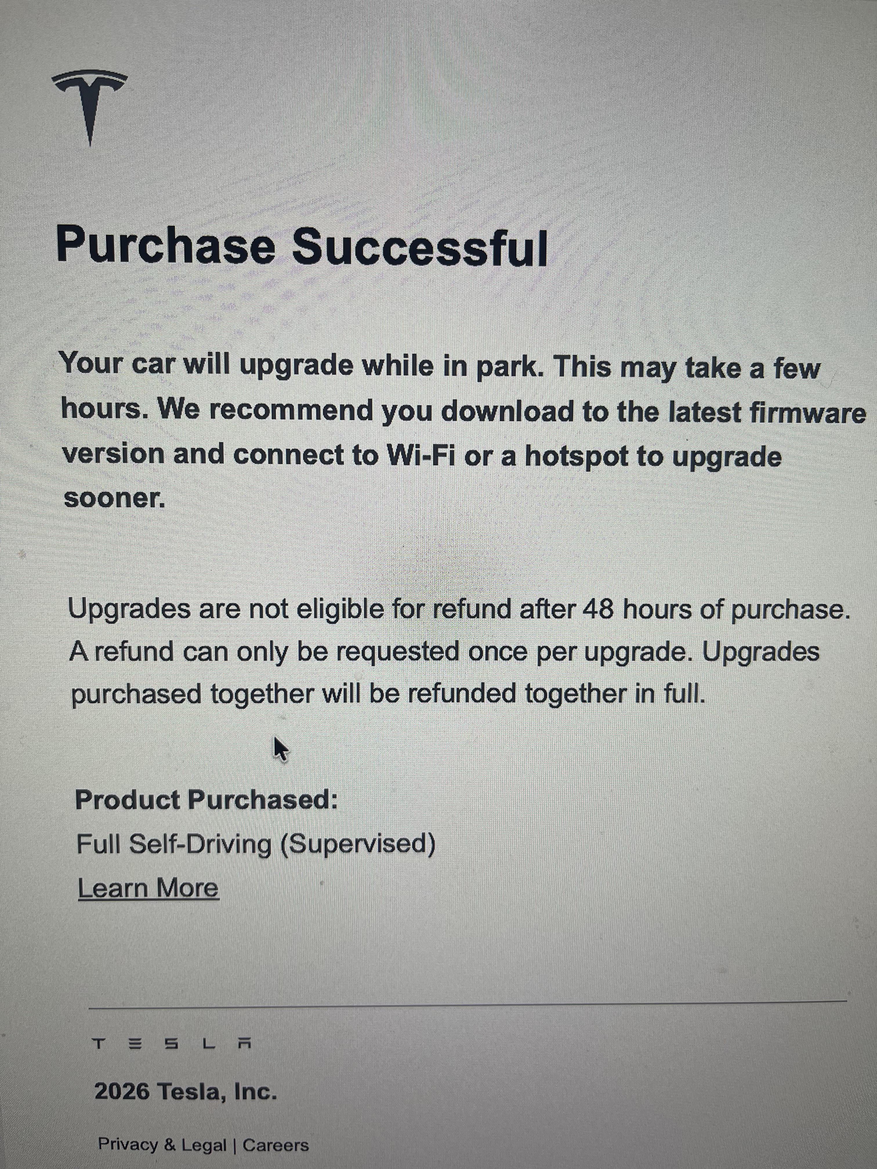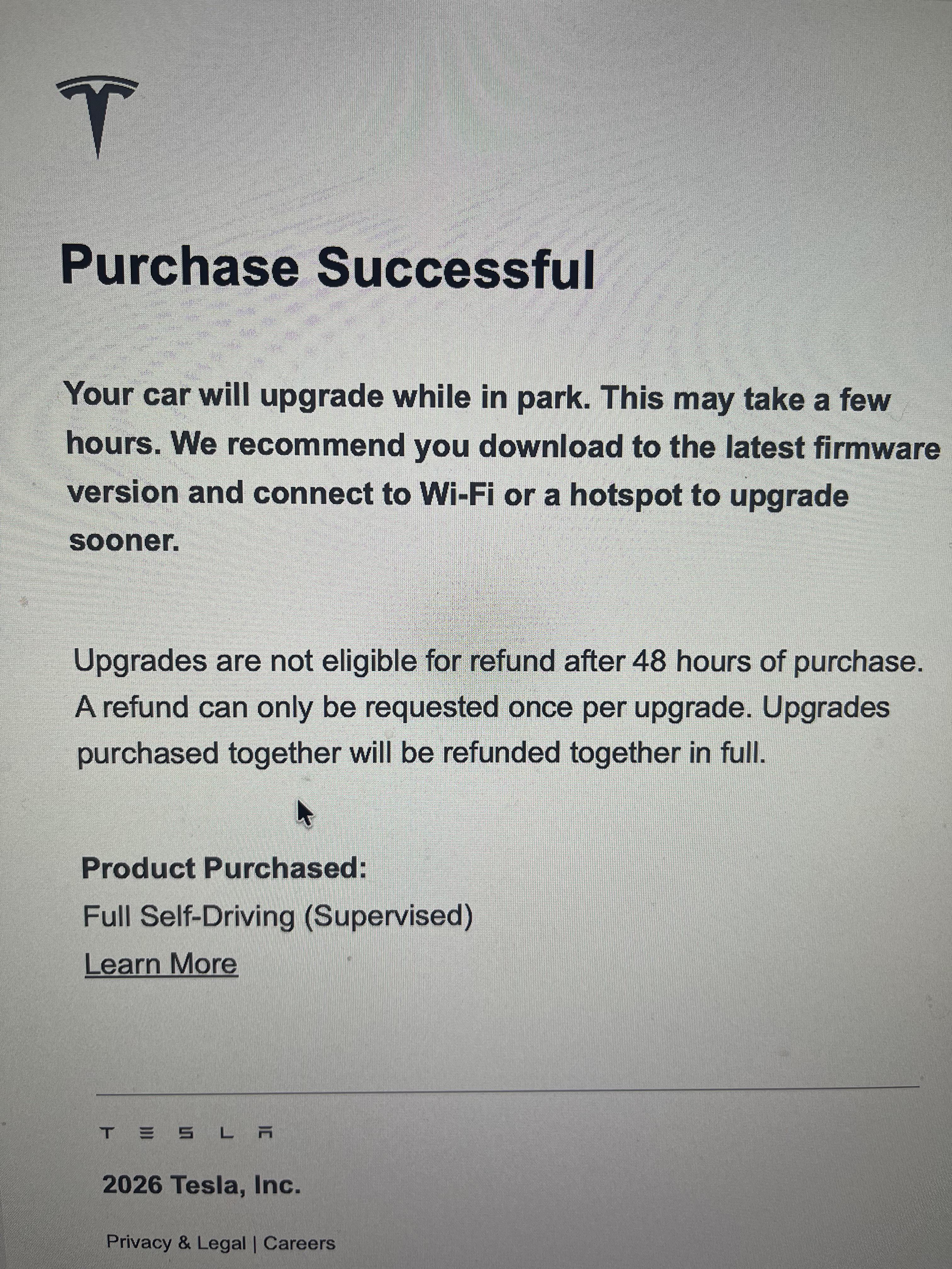 But wait wouldn't that upgrade be for the OGs that have purchased full FSD before they switched the name to FSD supervised (like it says in your receipt). Does anyone have receipts to compare? I don't know but I have a funny feeling that Tesla is going to be sneaky with that and only honor the ones that paid before the whole "FSD Beta" to "Supervised" name change.