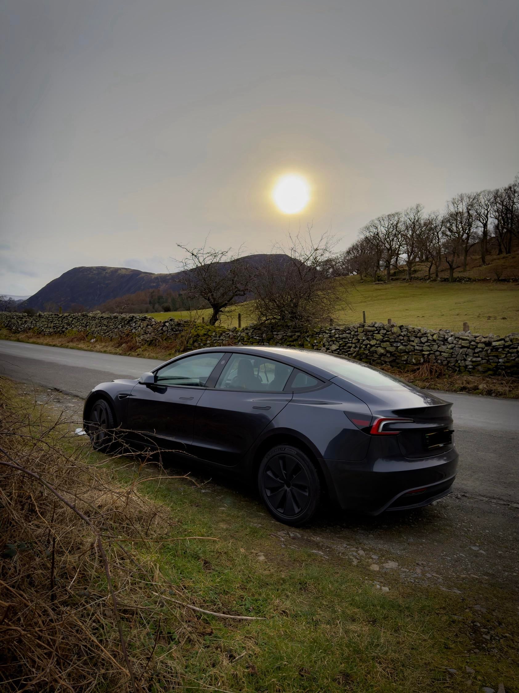 Stealth grey. Such a visually smart looking car. And as I get used to the tech etc gets better by the day. I have always watched a lot of YouTube on my phone on previous cars. This is now next level and so much easier in this car. Super smooth and quiet drive. Nice and spacious in the cabin. Even chill mode is fast enough. Standard super nippy to say the least. Lots of little things too that all add up to make life easier. Happy so far. My local supercharger is now a no go tho. Too expensive. Have to drive 15 miles for a cheaper one but much much cheaper at that super charger. My local one is 67p 😆. 26p at the one 15 miles away. Worth a longer drive