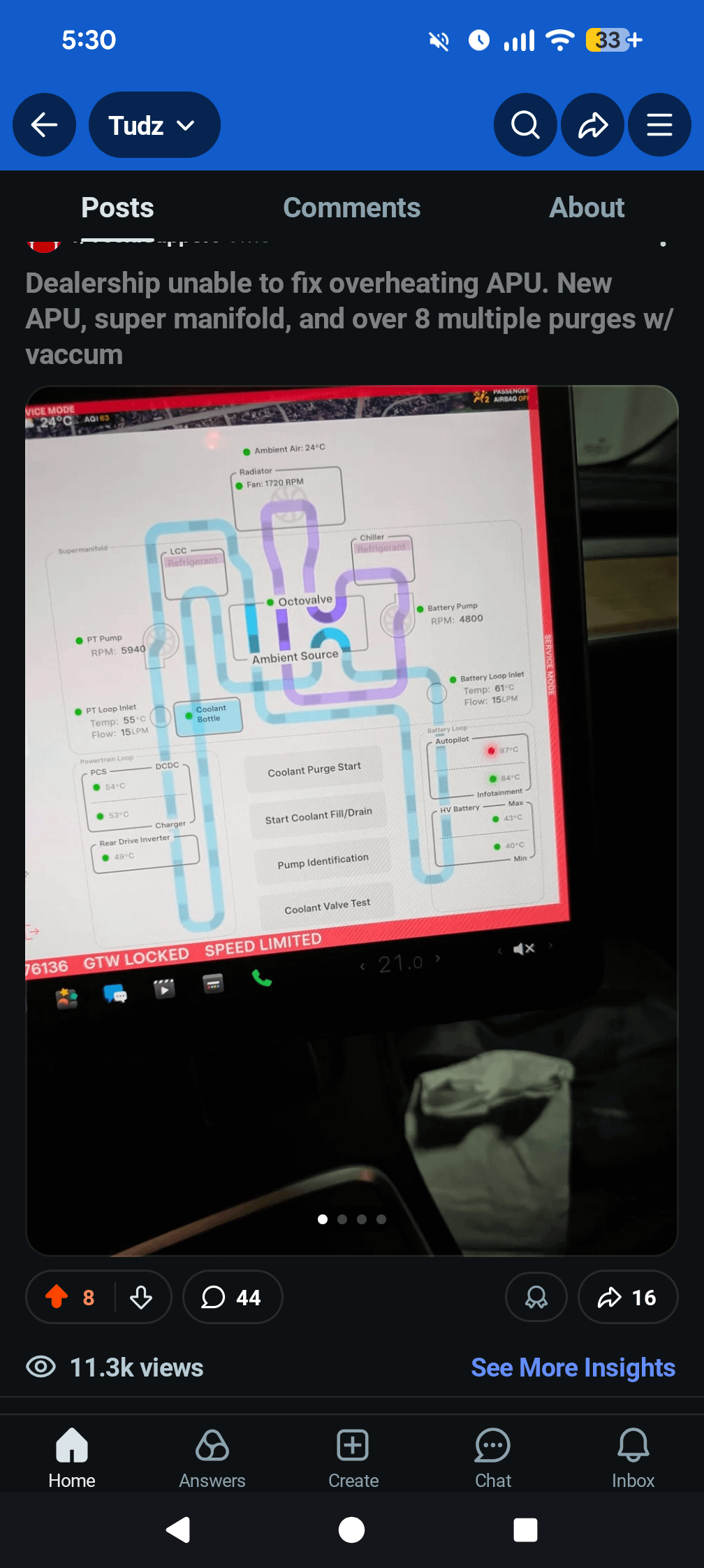 The APU is on the same coolant loop as the battery my coolant has to be hotter than yours on average to heat the battery the newest FSD software is over clocking the APU to track objects etc, they pushed the limits of HW3 so if the coolant gets hotter so does the computer as my coolant and yours is like 10C warmer just enough to cause FSD drop out and error this is why. https://preview.redd.it/cpwvo5jwn4lg1.png?width=1008&format=png&auto=webp&s=ae863c8204b1c25ac529fbbec469870363a1600f