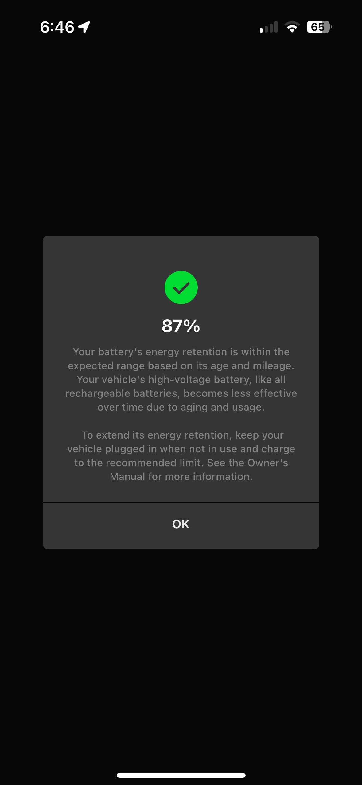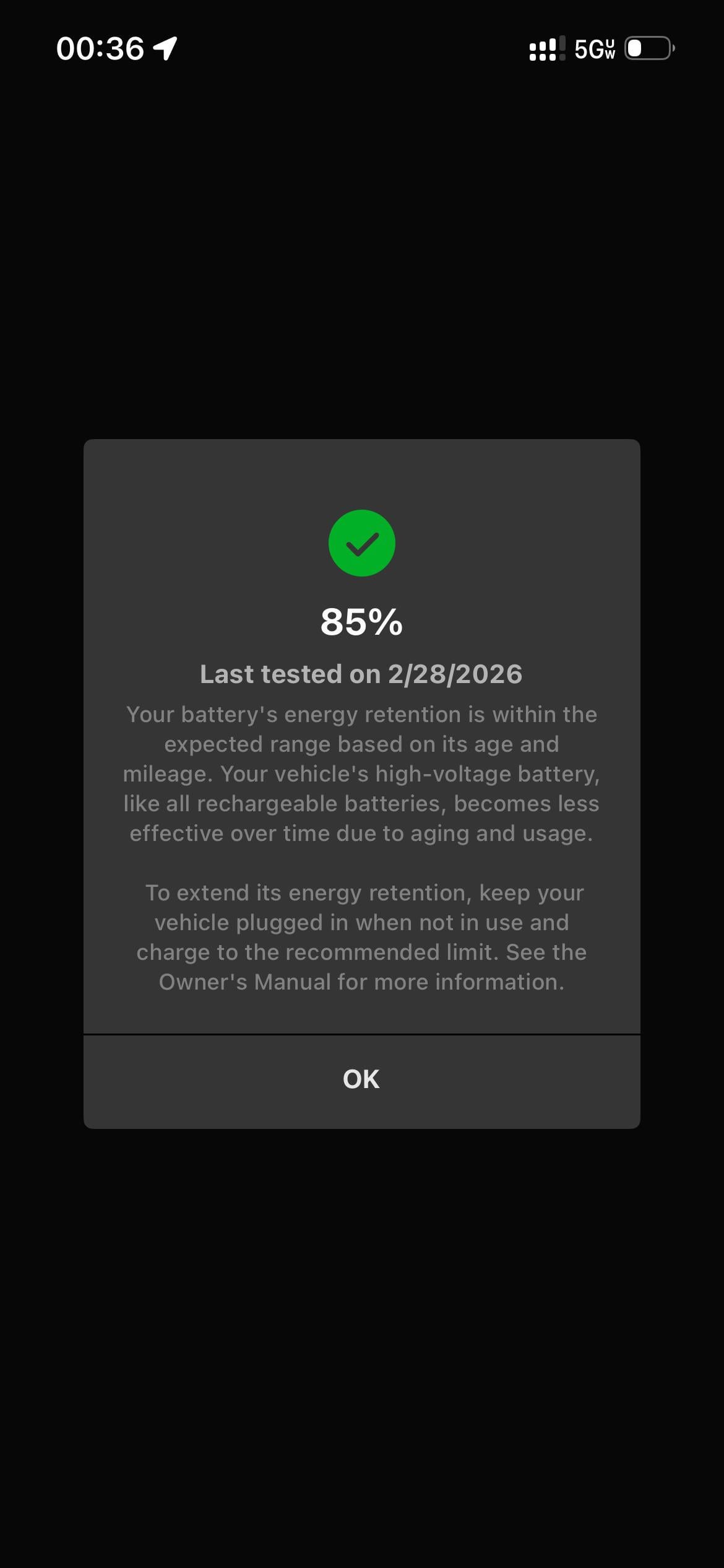 So you lost 7% in less then 3 years. As I mentioned the first 10 drops quickly. Not in months both the 4 year-ish is right around the ballpark. For reference I have a 2019 LR with 86% of SoH so that’s 14% in around 6 years, and OP lost 15% in about 5, all of these are in the same bucket statistically speaking