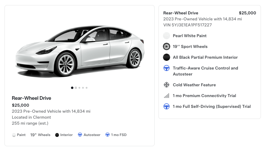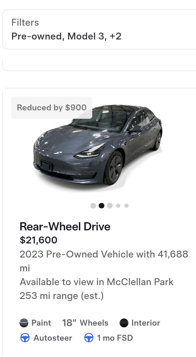 Just bought a 2023 tesla model 3 rwd from tesla's website, with 28k miles for 24k.