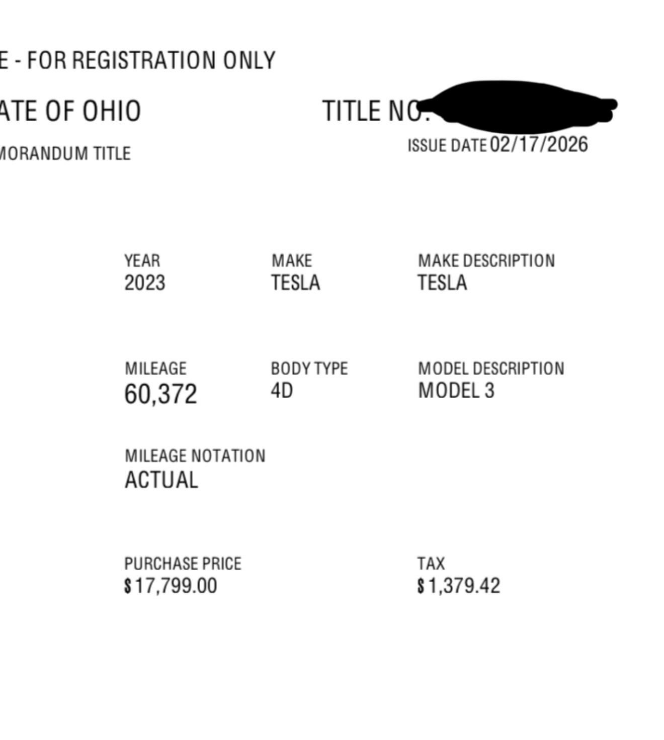 I got mine in Dec 2025 2023 Tesla model 3 rwd 23k for 24k miles