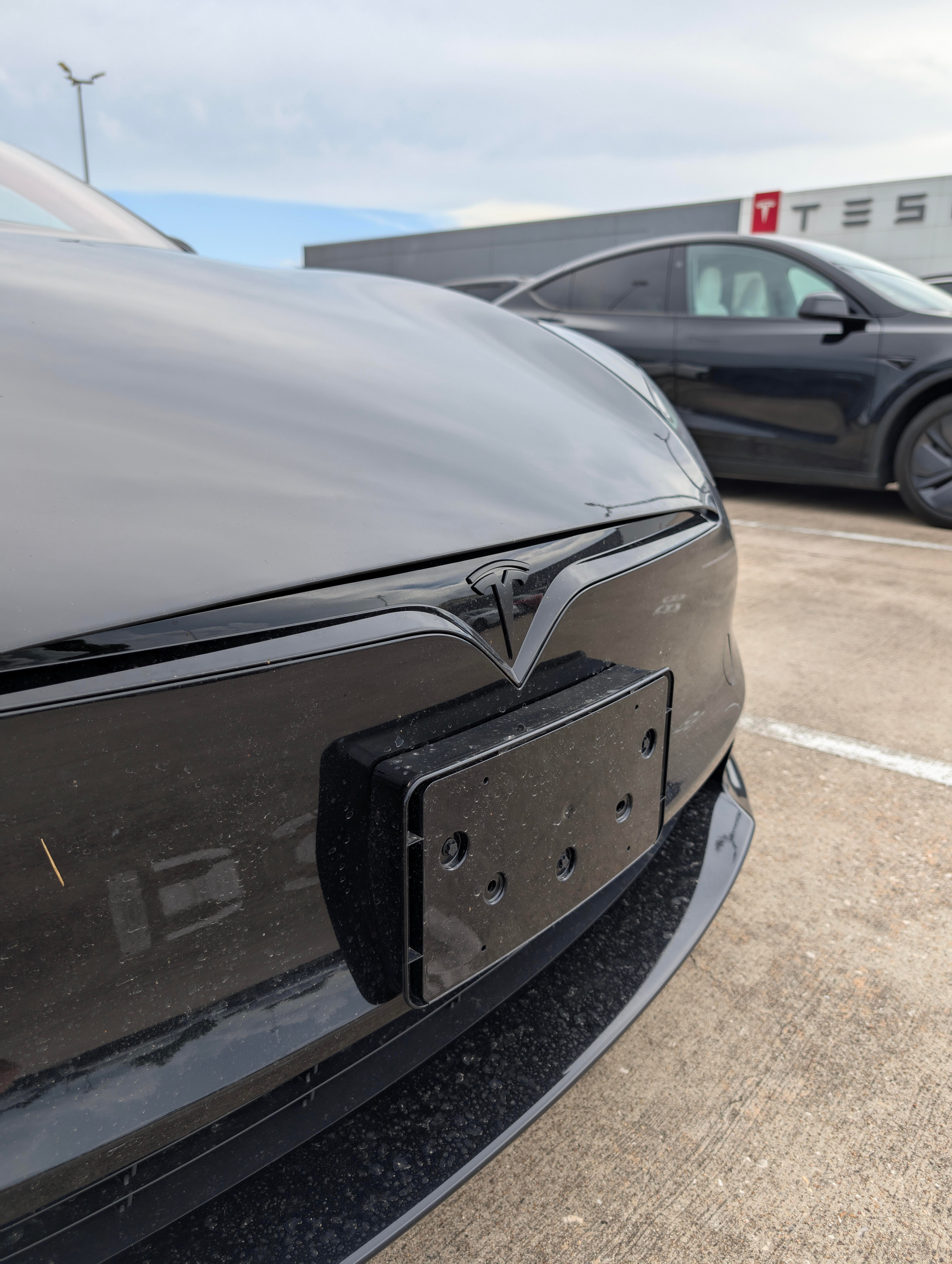 The license plate holder is meant to come off. No holes under there. So really once you remove that, Model S has had a design thats stood the test of time.