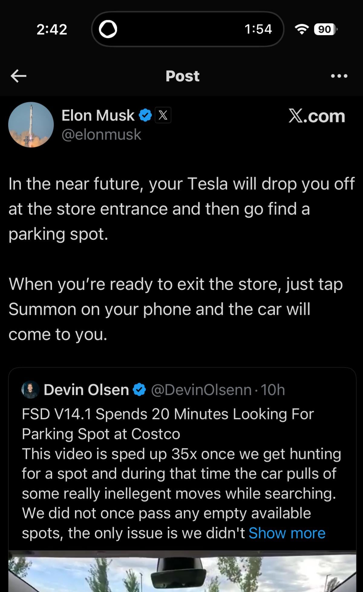 I agree he was egregiously early with those predictions back in 2016 but fsd was never trained on parking lots like it has been in 14. Influencer videos seem promising in the parking lots so far, I don’t think these features are years off at this point