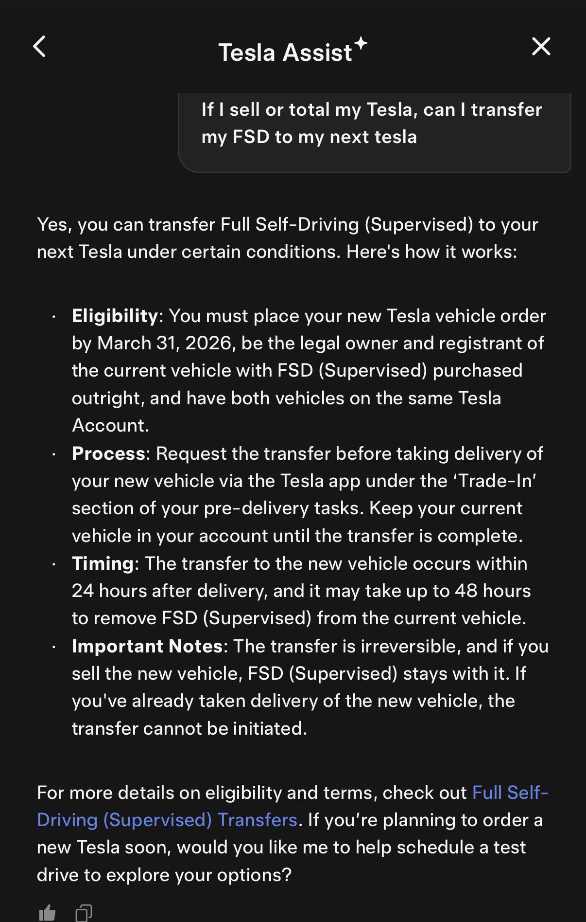 Are you suggesting Tesla is going to keep FSD Transfers forever? Making buying FSD outright more attractive? That would be nice, but I’m not sure that’s what this message confirms.