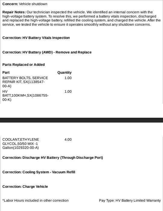 Hi Everyone, I’m looking at buying a 2019 Model X 75D (about 128,000 km). The seller provided a Tesla service invoice showing the high voltage battery was replaced in December 2025 under “HV Battery Limited Warranty.” The invoice lists the part as: **HV BATT, 100KWH, SX (1086755-00-K)** No cost charged to customer. It was done at a Tesla Service Center. What’s interesting is that this is a 75D originally, but the replacement battery is listed as 100kWh. When I saw the car, it was showing 334 km at 66% charge. That would roughly extrapolate to around 500 km at 100%, which seems closer to 100D territory than 75D. Questions for the community: • Does Tesla normally install remanufactured packs under warranty, even if the invoice doesn’t explicitly say “REMAN”? • Has anyone here received a higher capacity pack when replacing a 75D battery? • Is there any downside to a warranty replacement pack vs original factory battery? • Anything specific I should check in Service Mode before buying? Would appreciate insight from anyone who’s gone through a similar battery replacement situation. Thanks in advance.