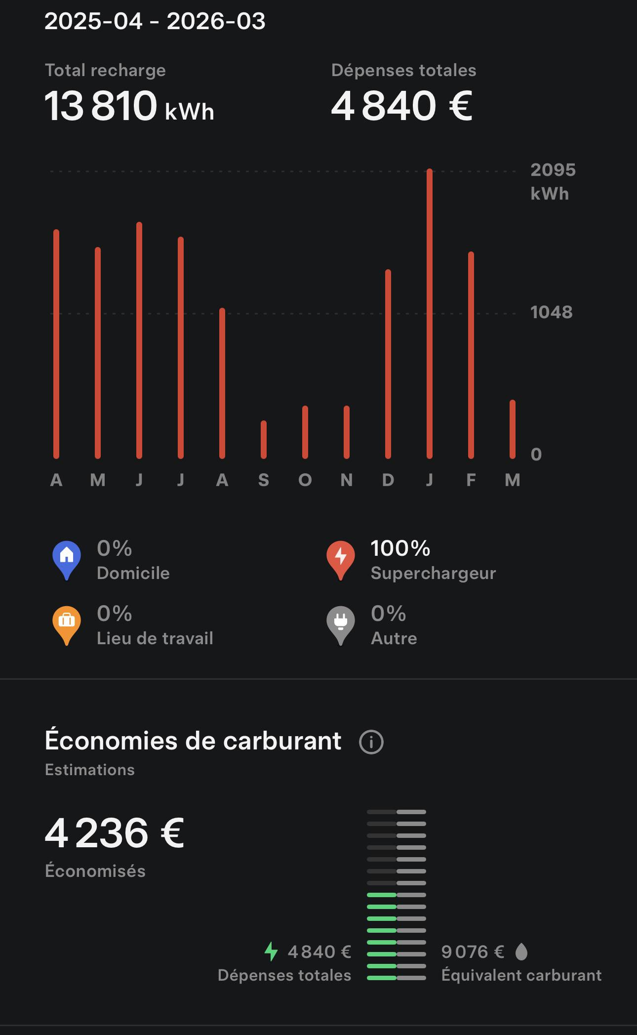 Your screenshot makes me glad I have free supercharging! I do roughly the same kWh but it costs 0.00 CHF for me \^\_\^