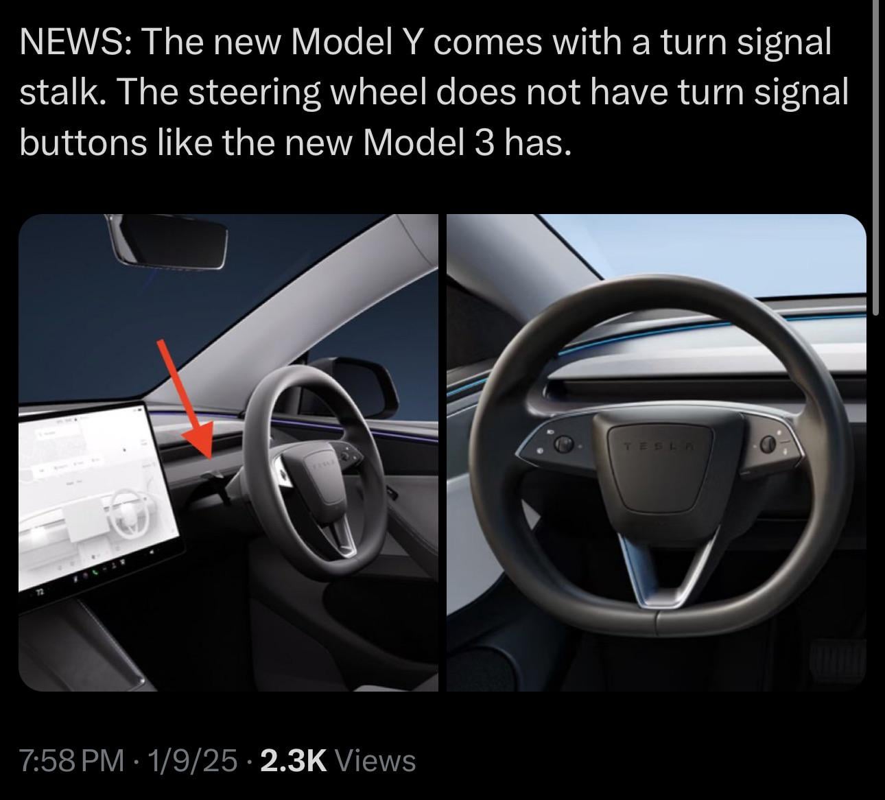 Interesting the indicator stalk is definitely there, not sure if the gear select is though. Guessing Tesla didn't want to risk sales for their best seller over the stalks!