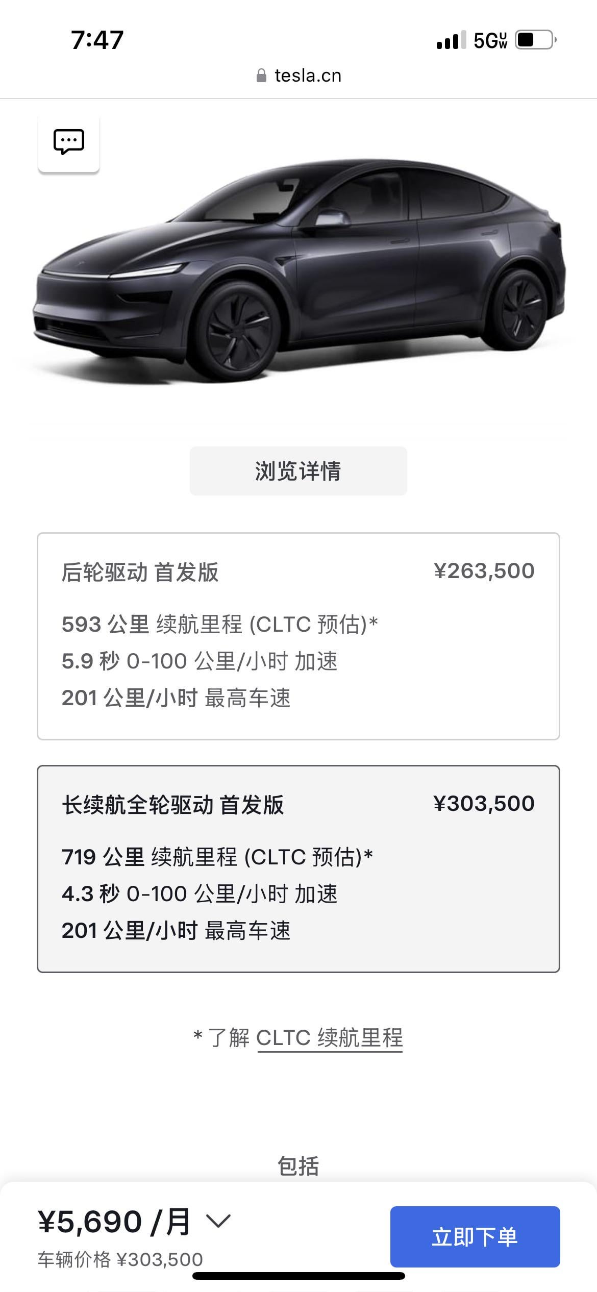 The “launch edition” is limited. Per Tesla: “Exclusive Launch Series badging on the rear liftgate, puddle light, doorsill plate and more. All-wheel drive comes with Acceleration Boost.“