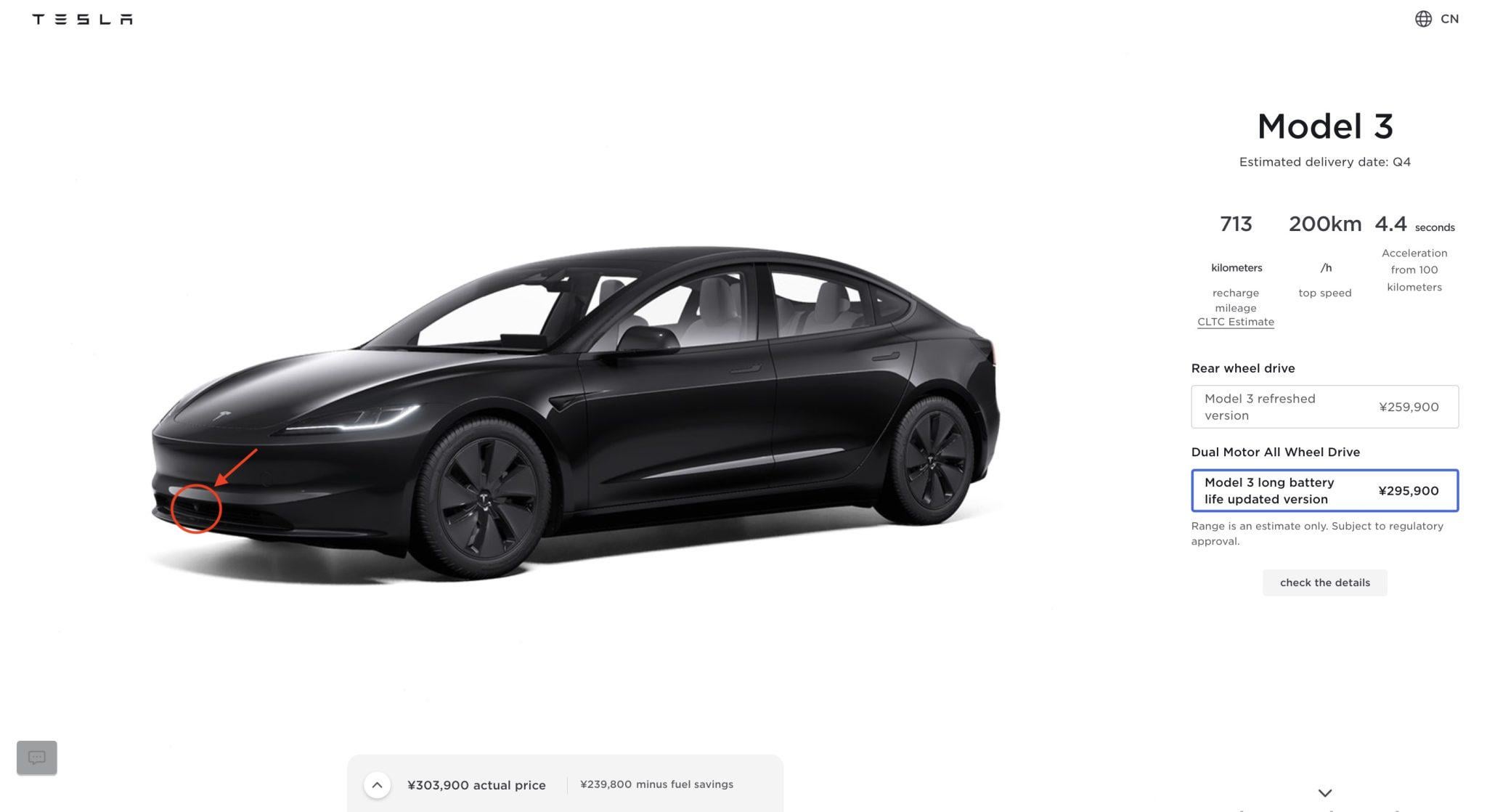 It has a front bumper camera. Just like cyber taxi and cyber truck. Front bumper camera is needed for FSD.