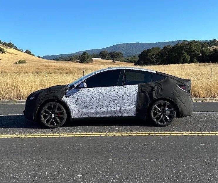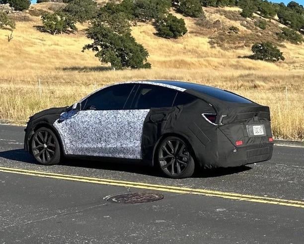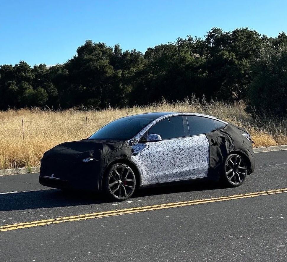 So we are supposed to believe that this car was spotted driving down what appears to be a rural road? But then we see the following: * Pictures were taken from three different angles with no visible motion blur. * The camera was on the side of the road. * The rims of the wheels appear not to have moved between the pictures. More likely that somebody from Tesla parked the car here, walked around and took three pictures, and then had them posted on Reddit.