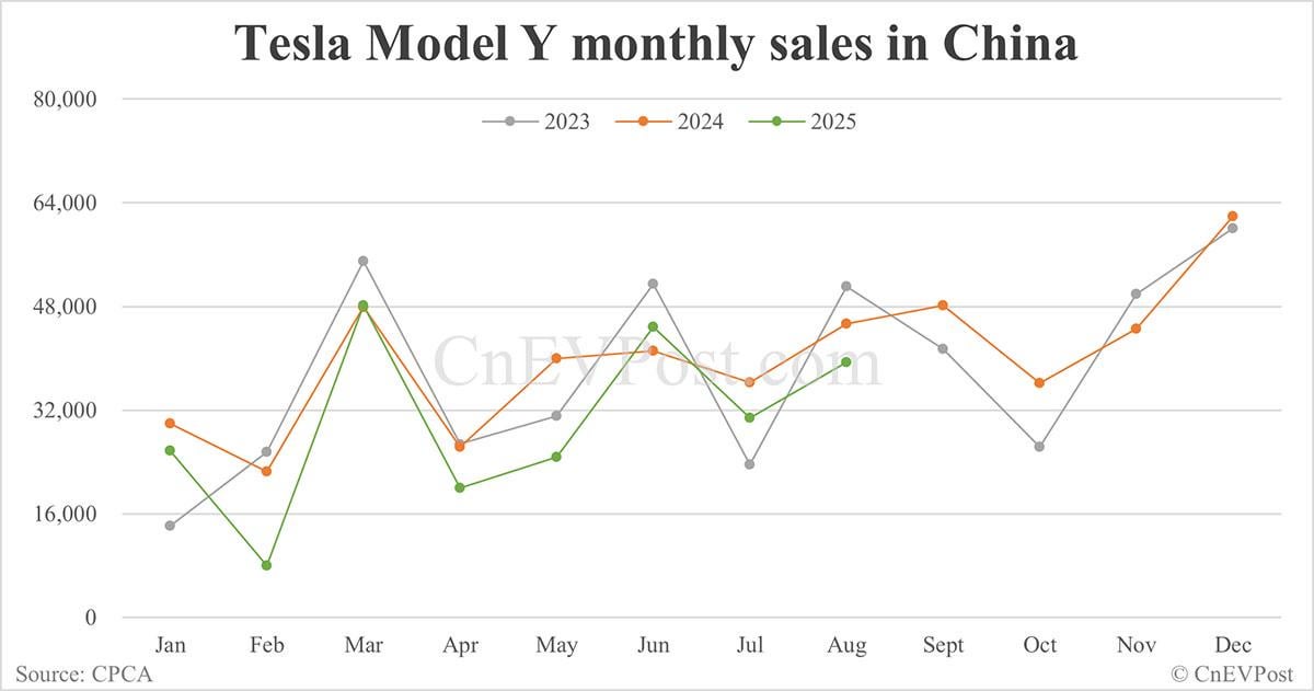 Tesla Model Y sales in China fall for 2nd consecutive month in Aug