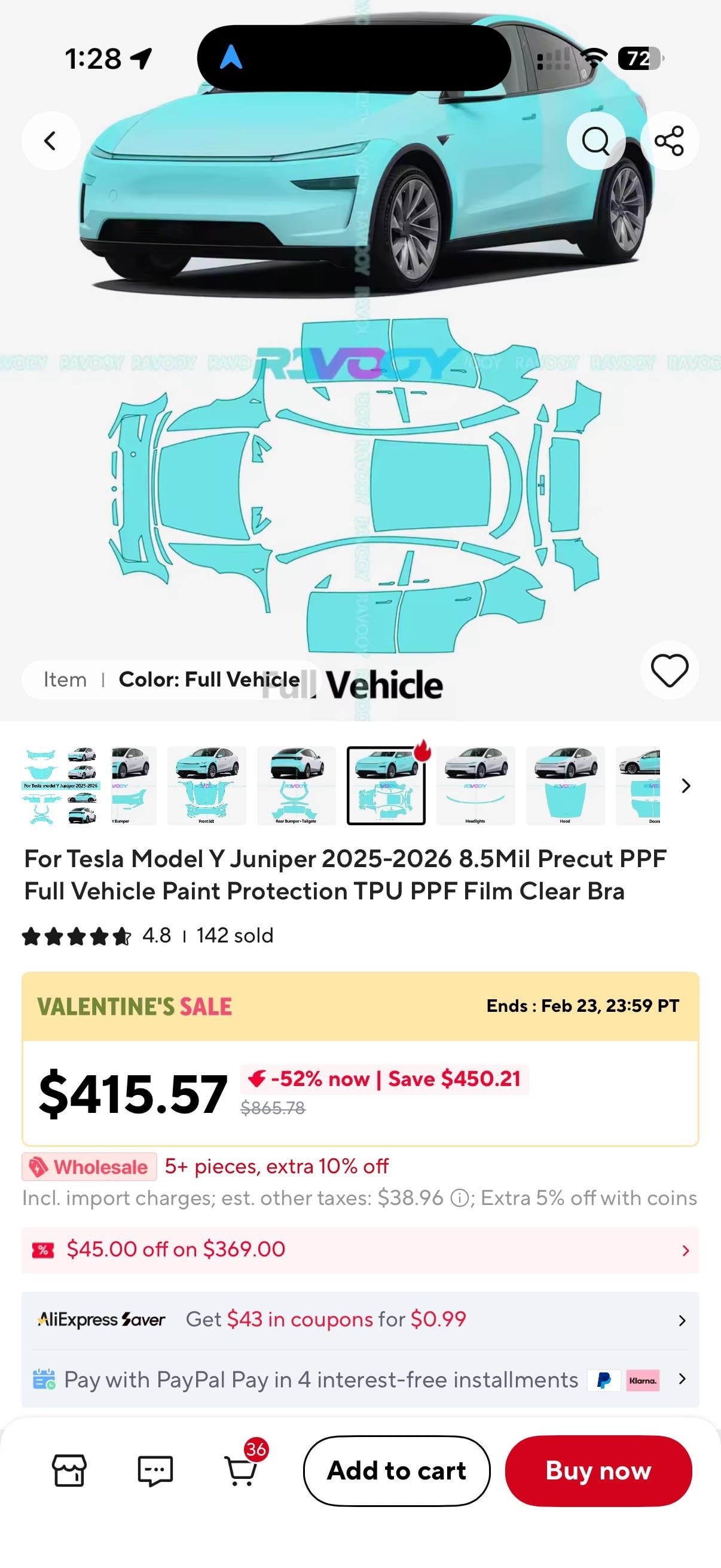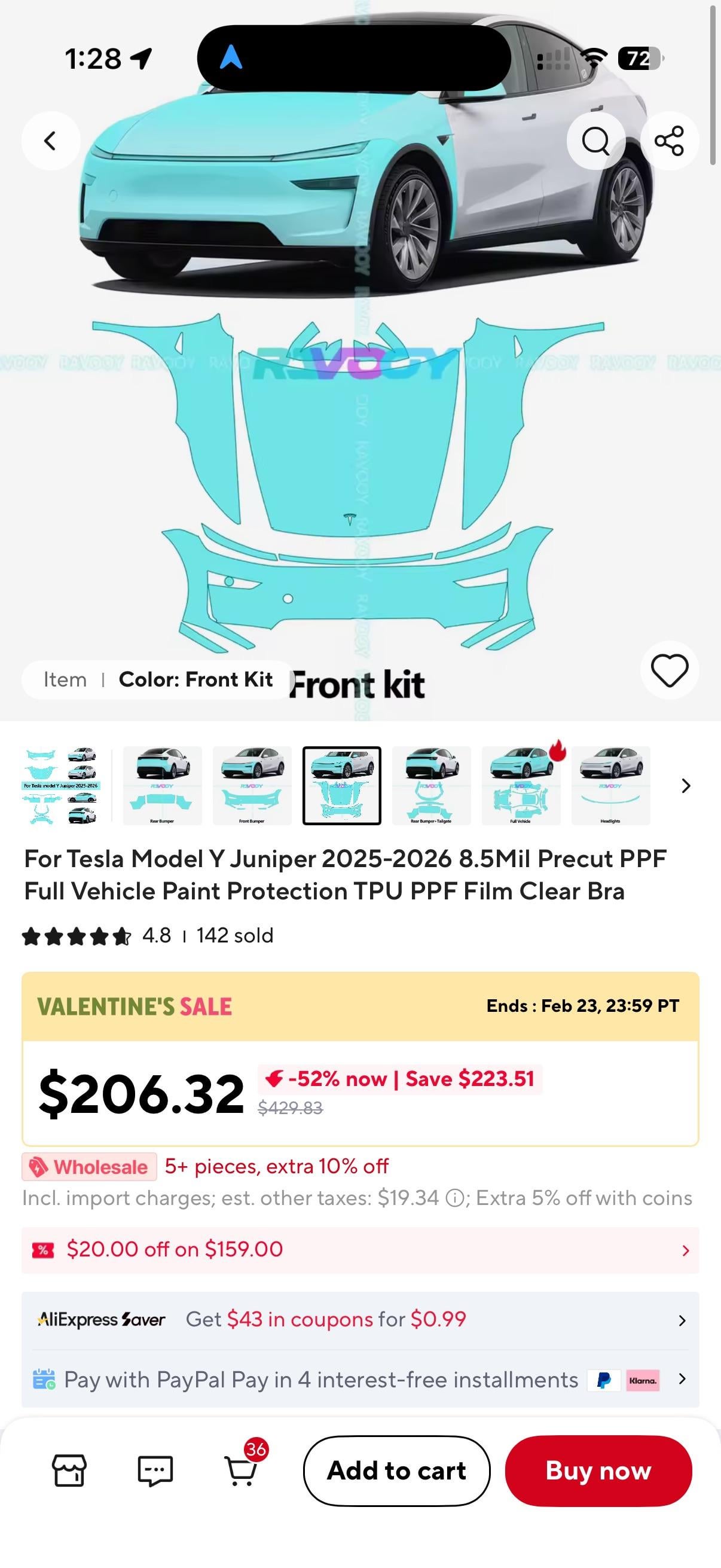\*Deleted and re-posting cuz I realized my whole address was visible on a lot of the photos haha\* I got this full frontal pre-cut ppf kit from Aliexpress for a little over $200, and it turned out perfect after around 10 hours of DIYing it myself over a weekend. I’d say it was a 4 out of 10 on the difficulty scale, especially thanks to the DIY Wrap Club tutorial videos on Youtube. I’m not entirely sure what film it actually is, but it seems like it’s good quality. Probably better than nothing covering the paint. Hopefully it’s not too much of a pain when I remove it in the future for re-application haha Screenshots of the listing on Aliexpress is on the last two photos! They also sell various different pre-cut kits including a full-body.