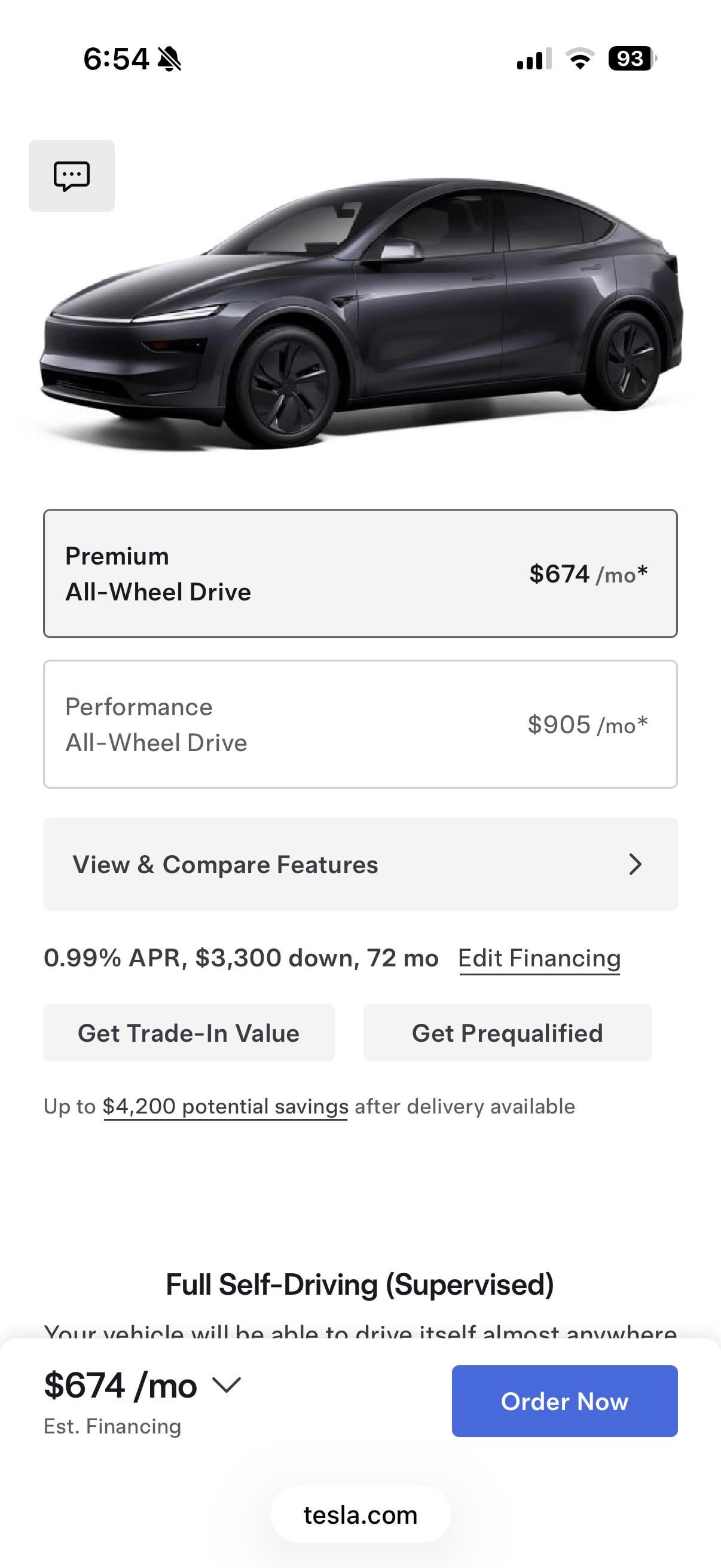 That’s exactly what I did. I was waiting to purchase a MY premium RWD and was hoping they would give a free paint or drop the finance % and then I saw the .99 today. Just ordered one - I’m tired of waiting!