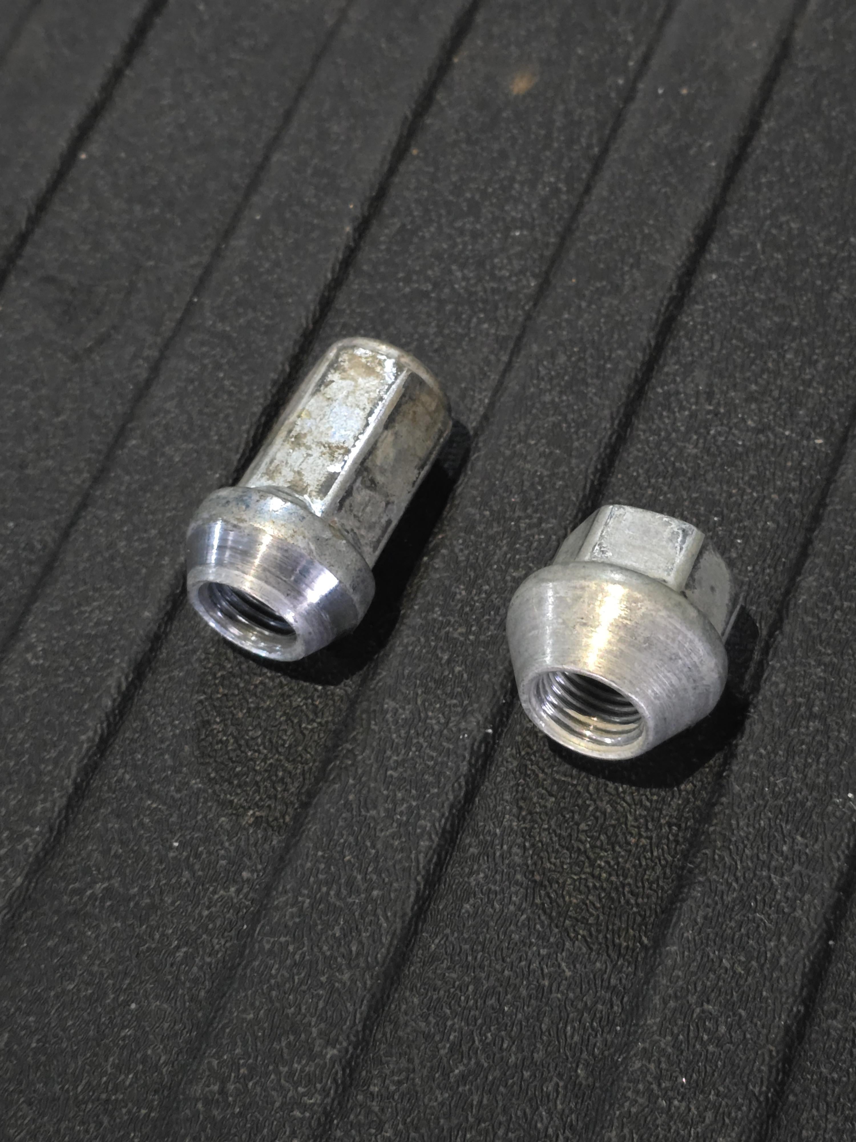 Hi, I bought a TMY 22 and the wheels have these nuts (the left one in the photo). But I found a second set of nuts in the trunk, which ones are the correct ones?