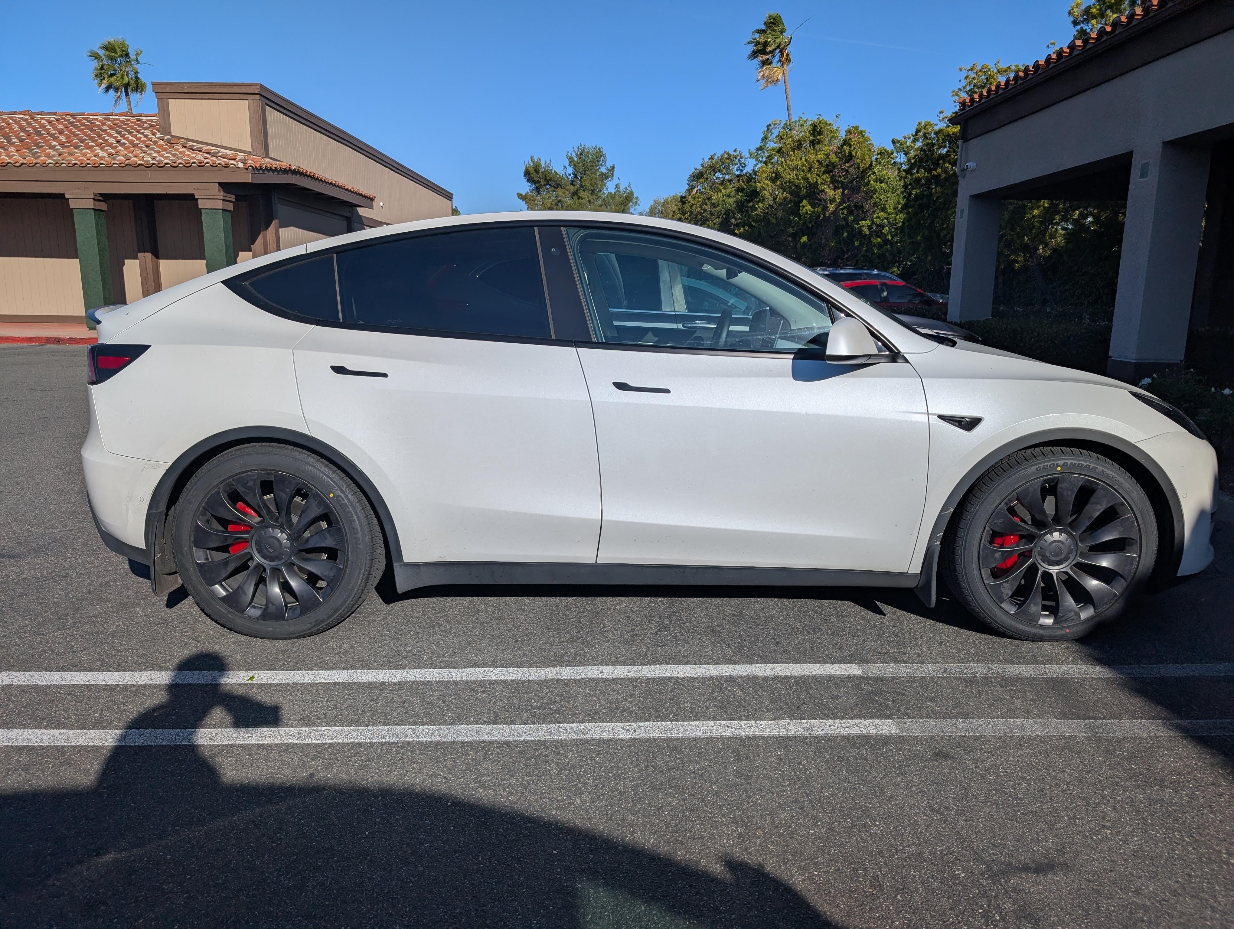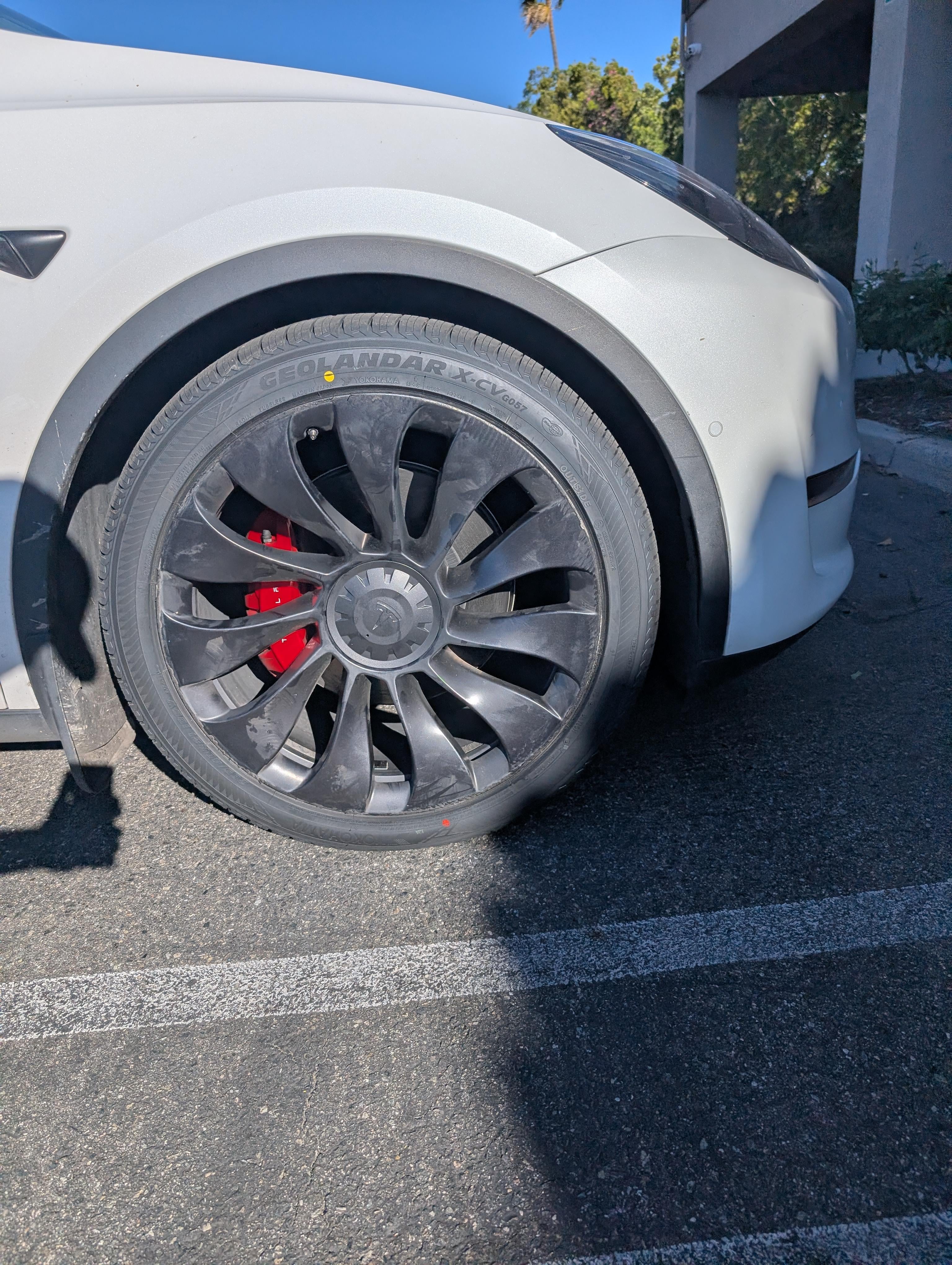 It was tire time and have always wanted to go bigger for a more comfortable ride. MYP ride is pretty rough and sought to dampen the road a little. Beefed up to the larger size and the ride quality is definitely improved. There is no rubbing even at full crank of the wheel. Steep driveways or speed bumps have not rubbed either. I went with: Yokohama geolander XC-7 Front: 265/40r21 Rear: 295/40r21 $1500 out the door (So Cal @ Tucker Tire) Suspension is still what it is, but these tires have softened the "crash" of bumps and potholes. Range and efficiency impact has been minimal. About 10wh/mi more than the OEM Size. I'll keep an eye on longer term energy usage. (Please excuse the dirty car. Have kids...)