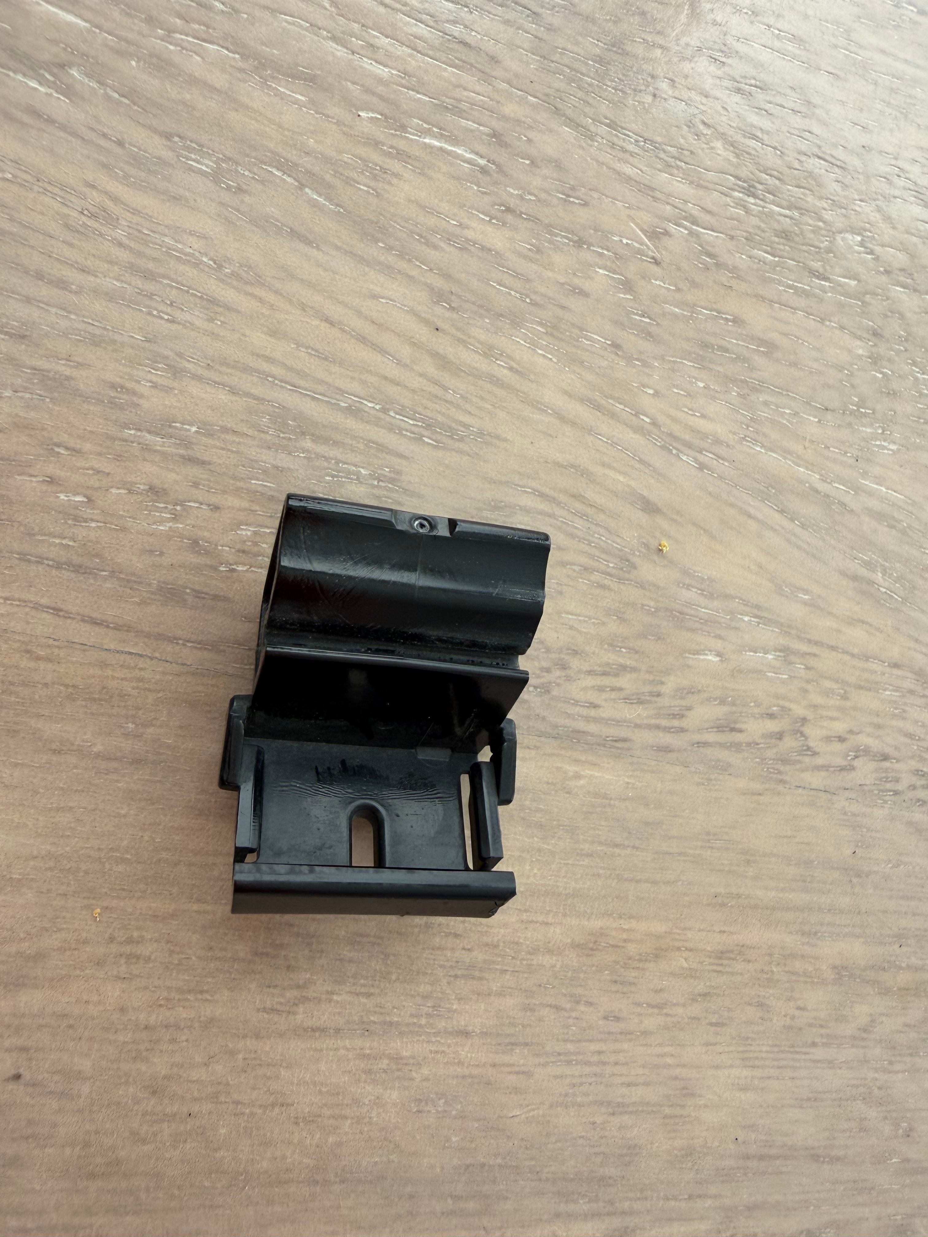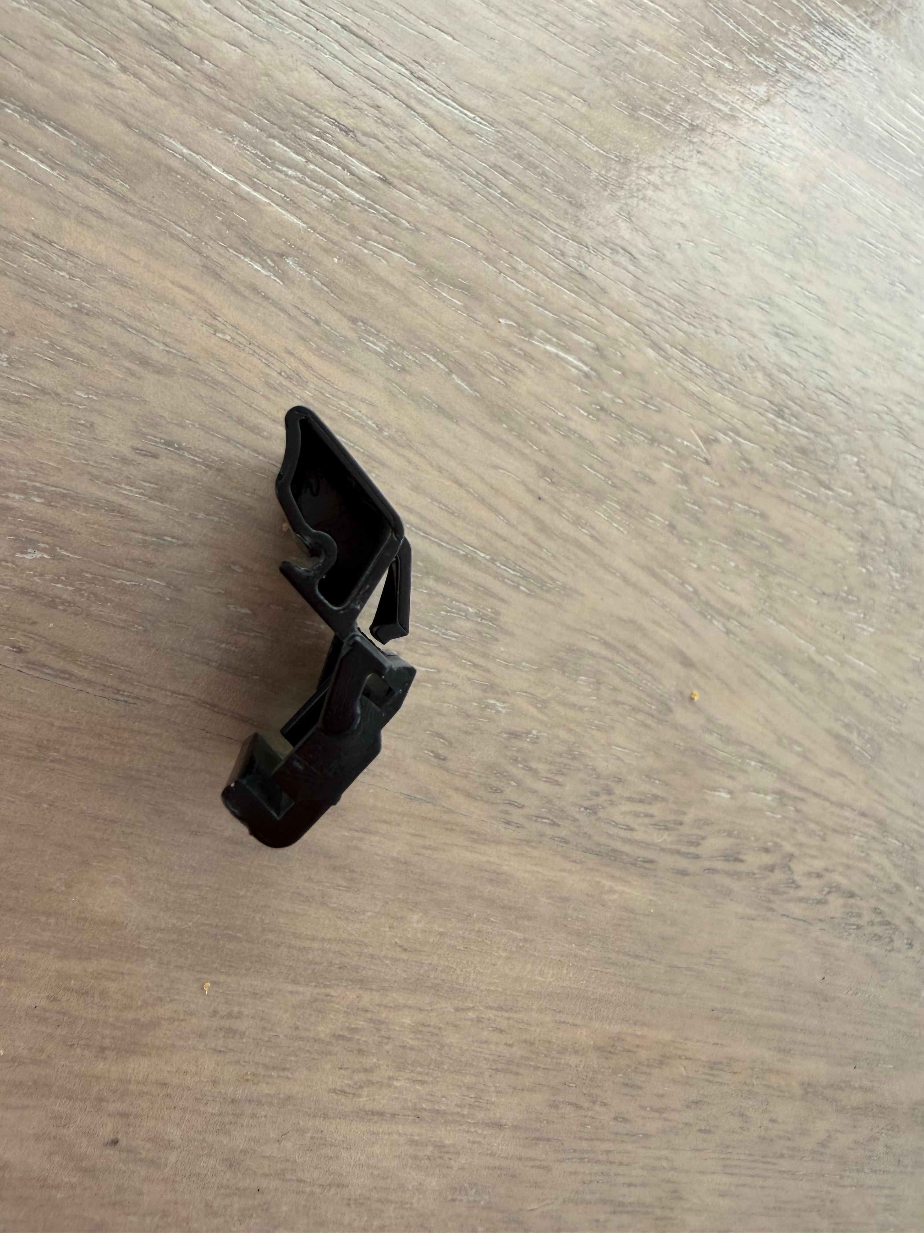 Looks like the (extremely fragile) clip that goes on the left/right side of that removable upper cowling in the frunk area. Not your fault and honestly not a necessary clip.