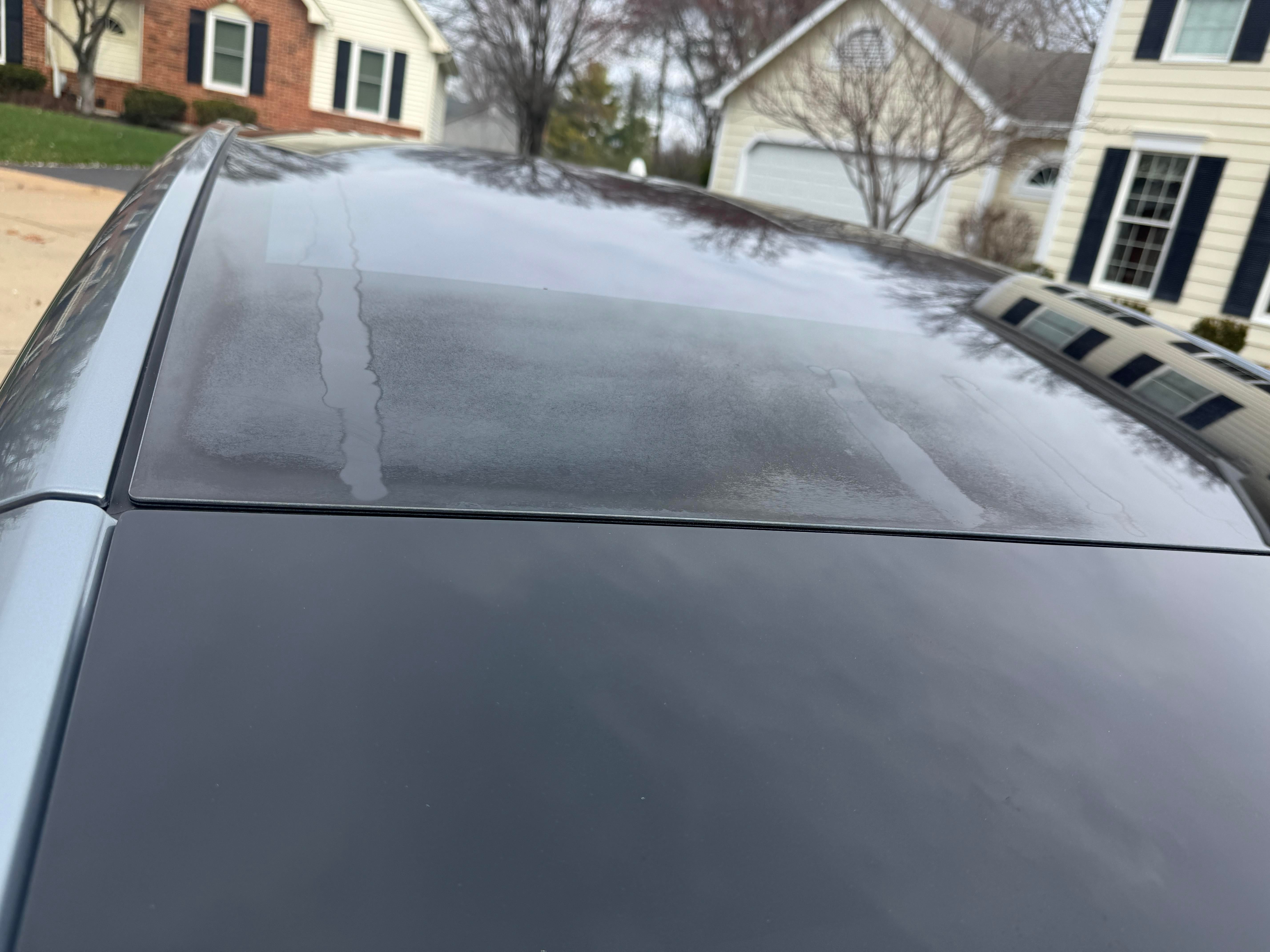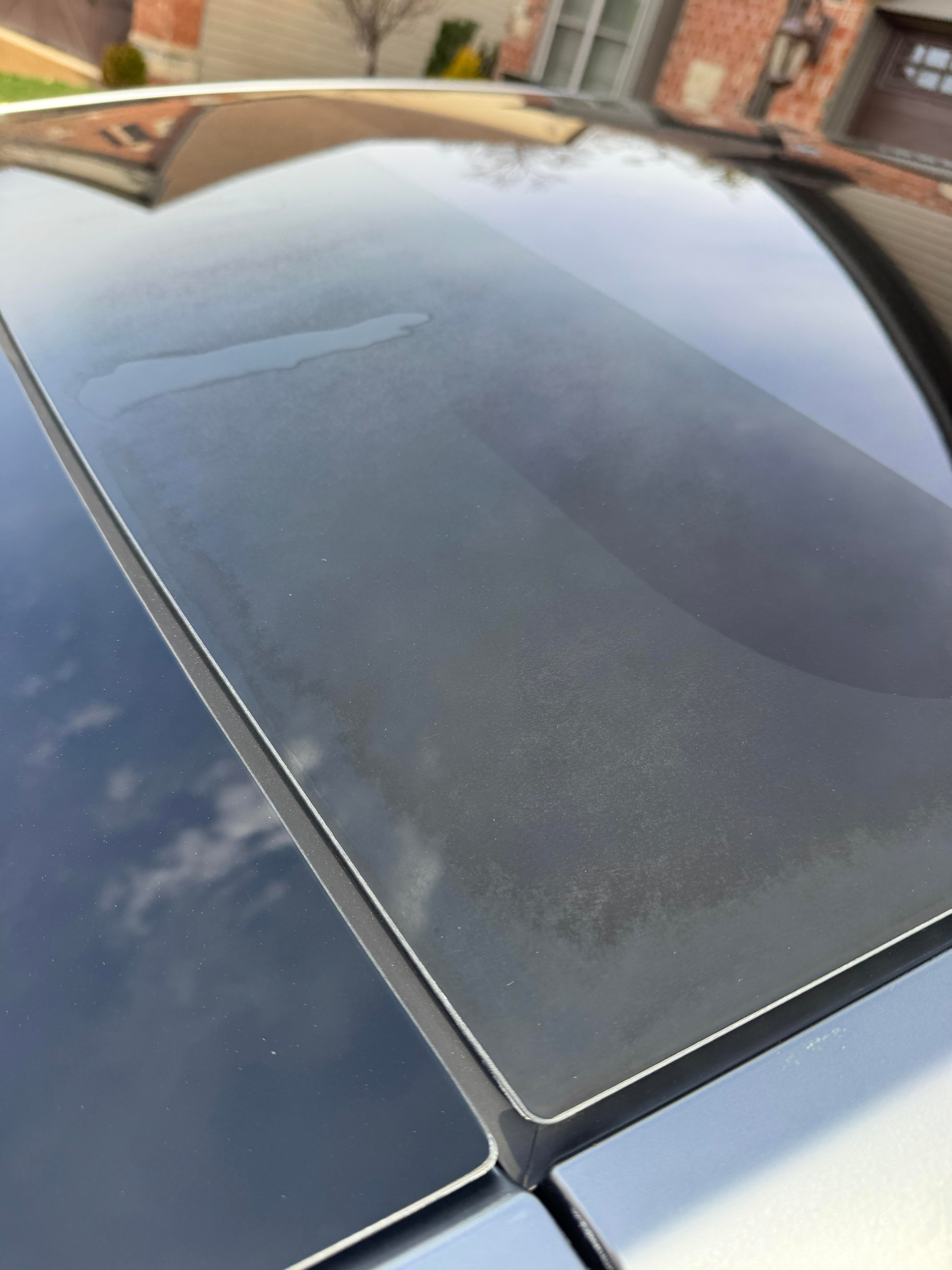 Looks like a very aggressive cleaner that removed the clear coat on the glass panel