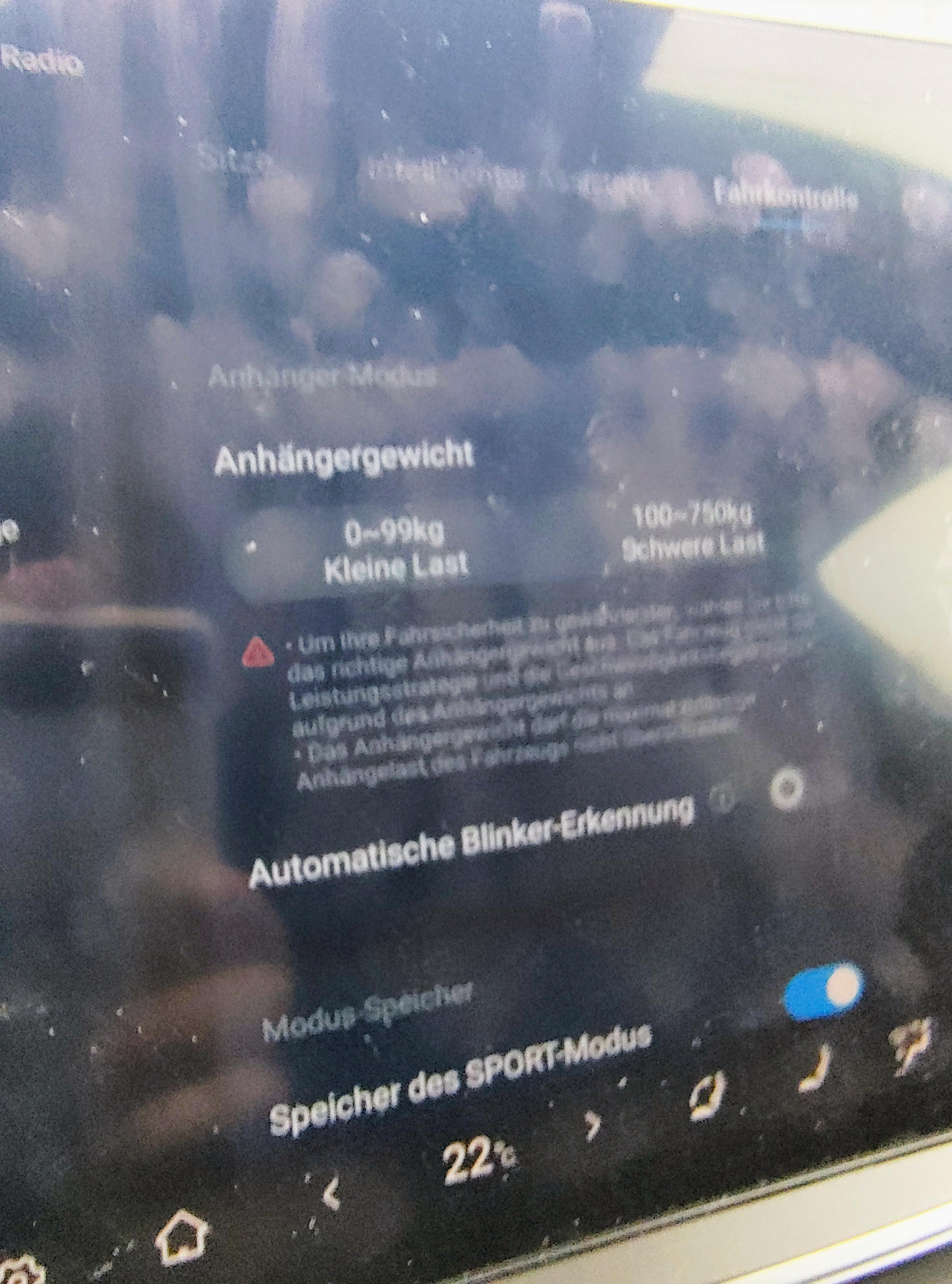 New option for trailer hitch mode. Trailer hitch mode is anyways only available basically have a trailer hitch which is programed into the car. In my case I have to BRINK/Thule. It's a feature even the sales guy told me that they are planning to bring out, I can remember now. You can now define if real trailer is connected all for example a bicycle hitch carrier. According to this choice the car is no more limited in his seed from 100km per hour. Which was by design before this feature. https://preview.redd.it/v413ks1f81ig1.jpeg?width=3120&format=pjpg&auto=webp&s=0b0c0f37b88fa617ad800a109fa5a2c2bcf4d113