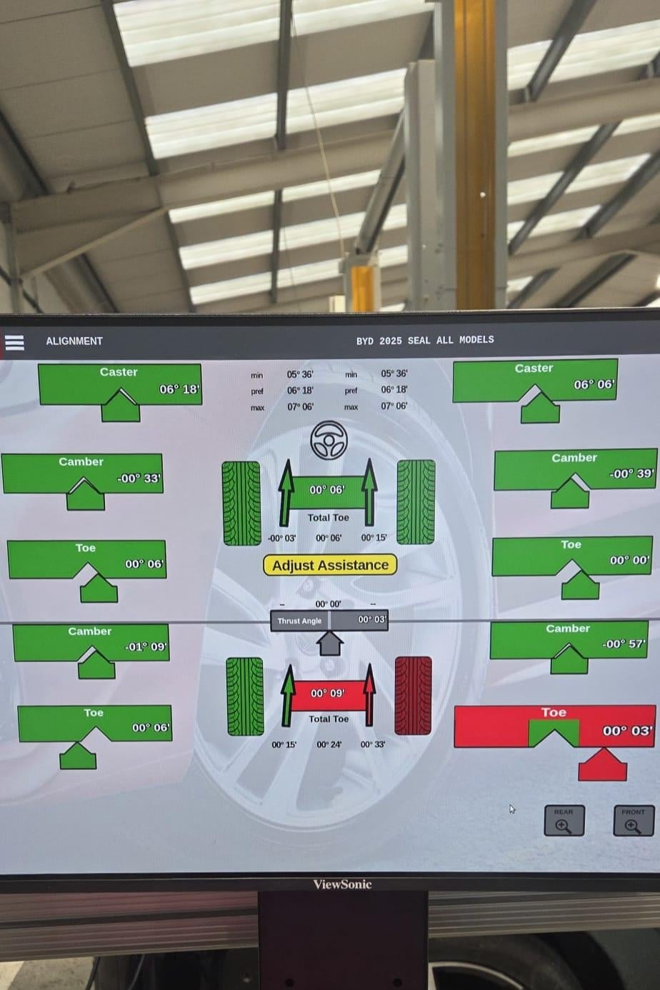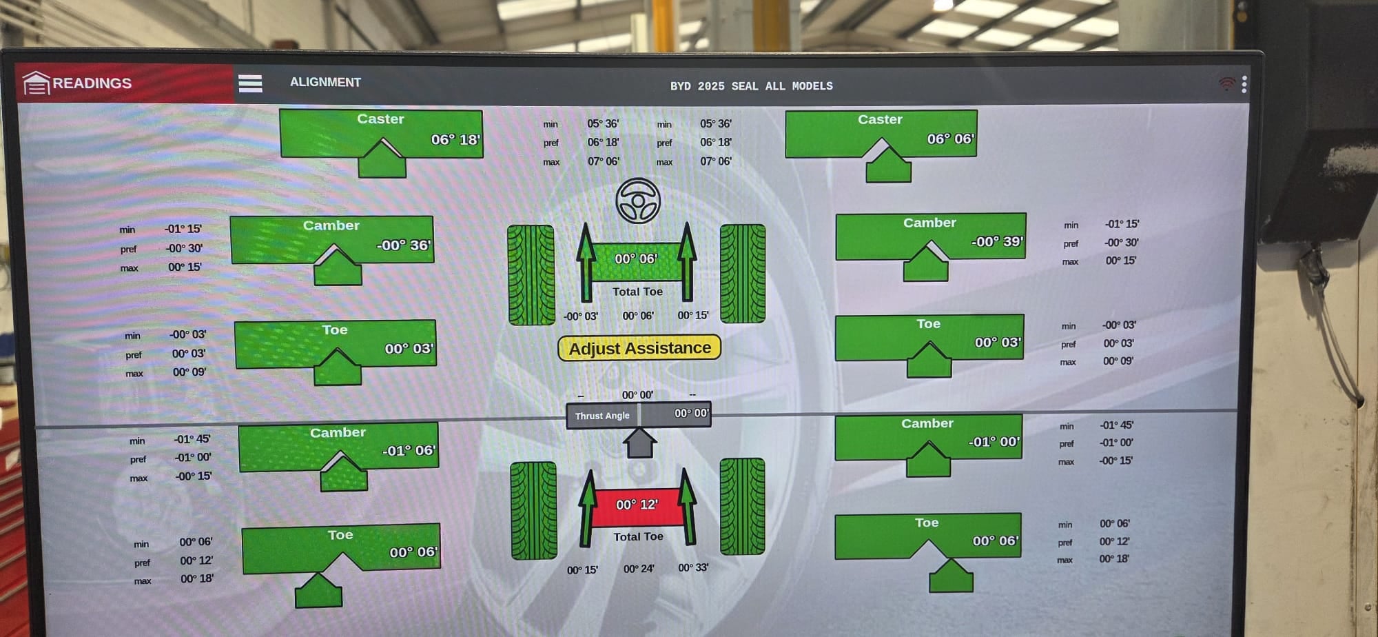 Hi Everyone, I’m looking for some advice from fellow BYD Seal owners. My BYD Seal Design RWD is brand new (just ~600 km driven). I noticed from early on that the car pulls slightly to the left when the steering wheel is straight, especially noticeable on longer drives. I took the car back to the dealer, and they: *-Confirmed there was an alignment issue *-Carried out a 4-wheel alignment Shared the before and after alignment readings (attached) However, even after the dealer correction, the car still drifts to the left on flat roads. I also noticed that the rear total toe still shows red (00°12) on the final alignment report. Just wanted to check: Has anyone experienced something similar on a new BYD Seal? Did a second alignment or steering centring solve it? Was it a dealer fix, tyre issue, or something else? Any feedback or shared experience would be really helpful. Thanks in advance 👍