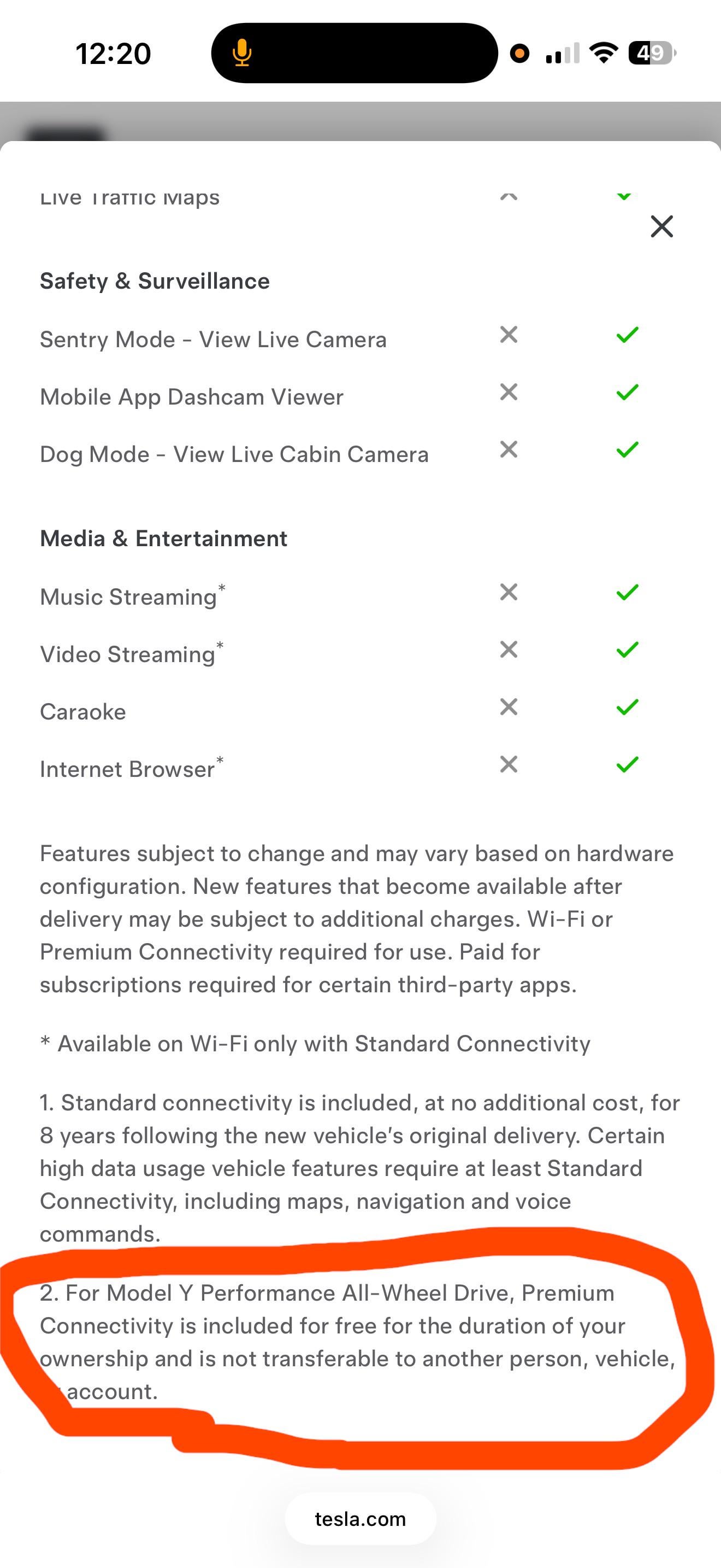 I bought a 2023 Model Y performance, and not only was the price higher than it is now, but if Premium Connectivity is free, then Tesla really isn’t being fair. Someone have to pay for connectivity life time and someone gets free for the life time. lol
