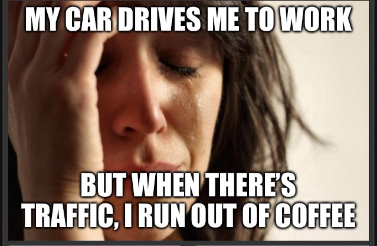 I run out of coffee without traffic anyway because the car drives like an 80 year old would. Still neat tho