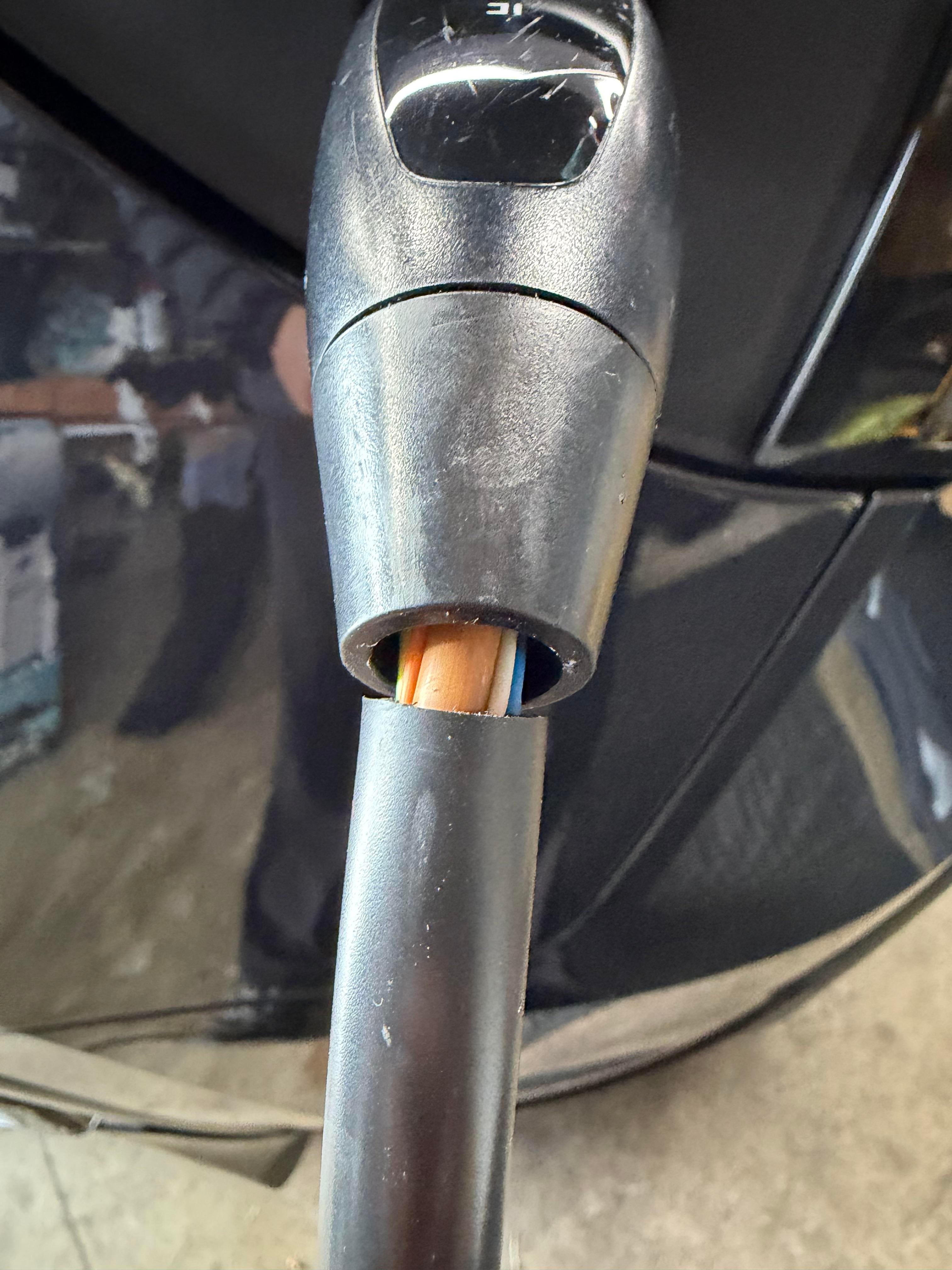 It is 3 years but it looks like the cable jacket slipped off the crimp since it looks like a clean break. I'm no plastics engineer, but Tesla shouldve made the two materials join with a proper joint?