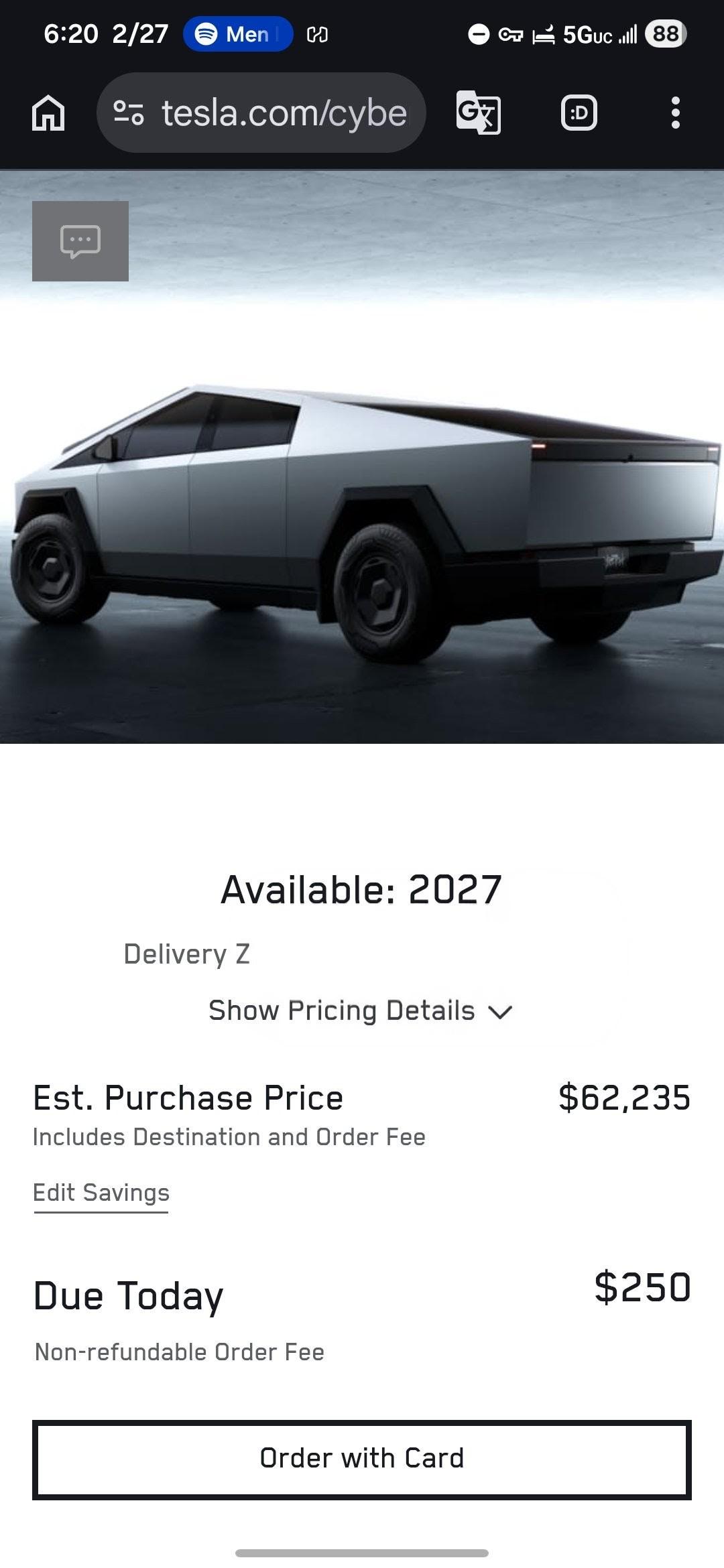 I’m not surprised if they got a shit ton of demand for this. When he unveil this, it was suppose to be 40k. Then everyone just got turned off at the 80k price. Looks like prices are finally coming down. If i wasn’t stuck on a lease, i would get as well.