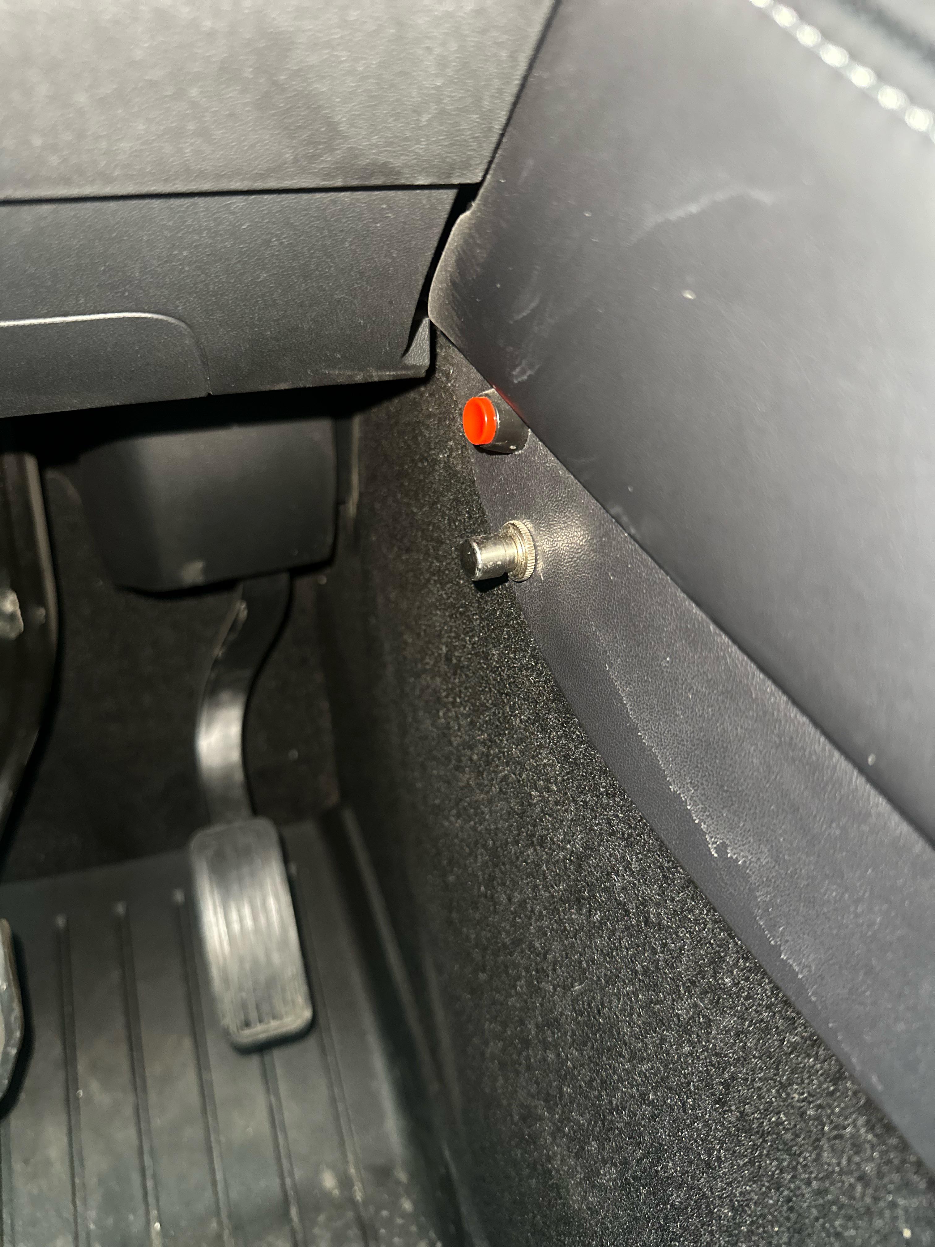 After using ChatGPT and doing a little bit of research I can tell that the buttons, particularly the red one, you are seeing and referring to are in fact used for the disconnection of the seat screws(L1 and L4) from the base of the floor in said car while simultaneously creating an opening through your glass roof. In theory, this allows you to shout ejecto seato cuz.