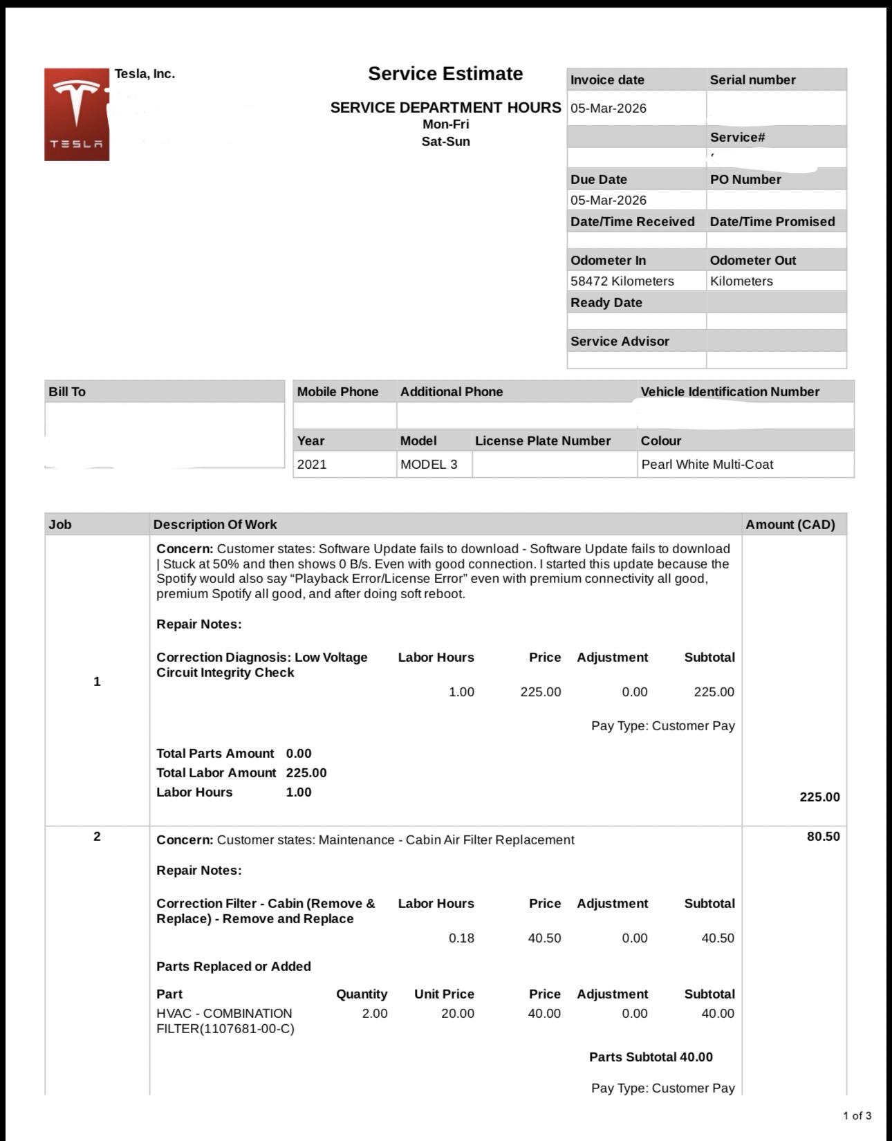 225/h for labor is EXTREME. In the fuel industry, it's around $105 an hour in the southeast for labor. Just imagine how much Tesla is ripping us off lol. Also a soft reboot is not an hour of labor LOL