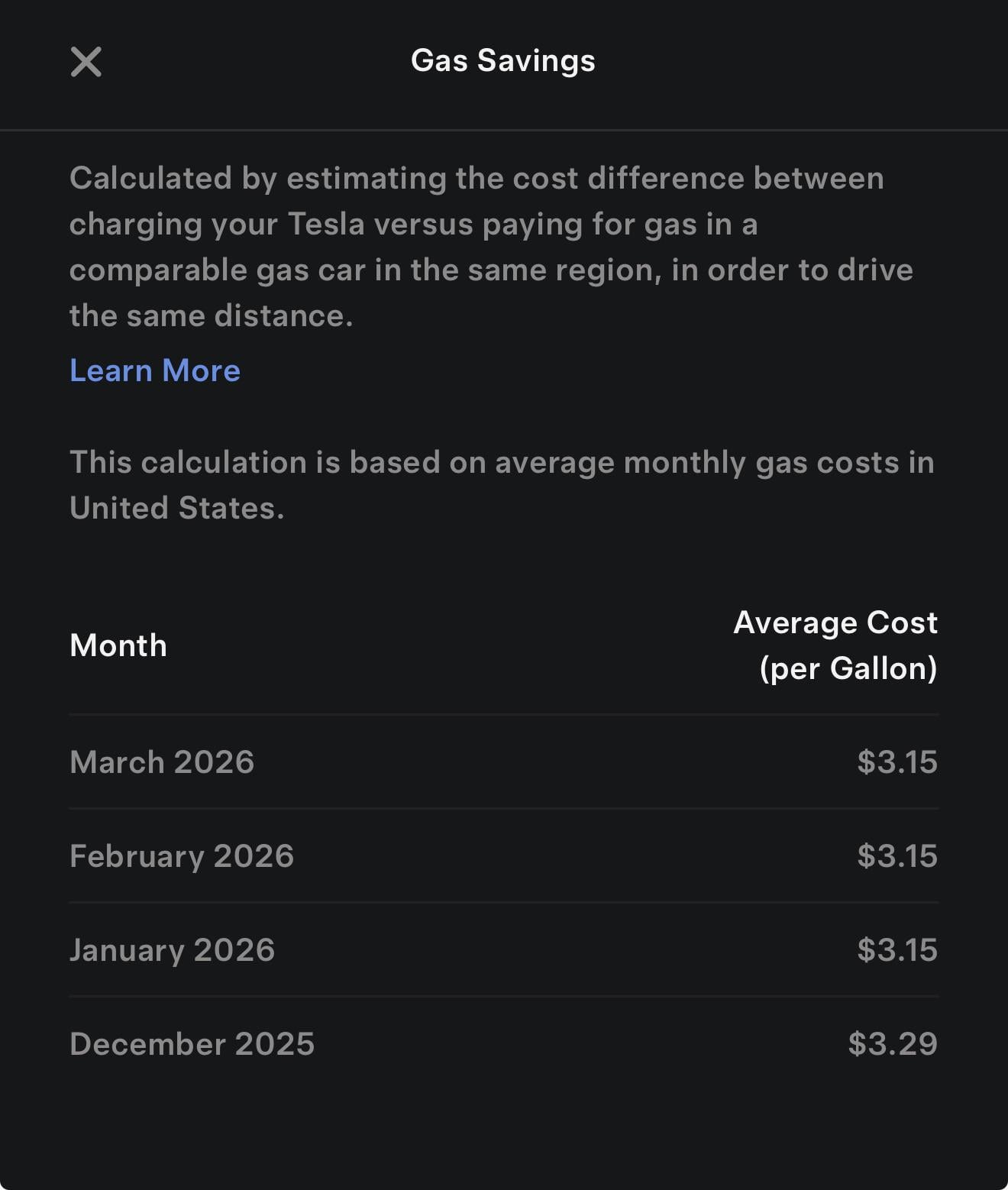 Why worry about the gas prices when you can't even set MPG? Tesla assumes something like 20 MPG while I was getting 40 MPG with my old Prius. So the gas savings calc is more than double the actual savings for me.