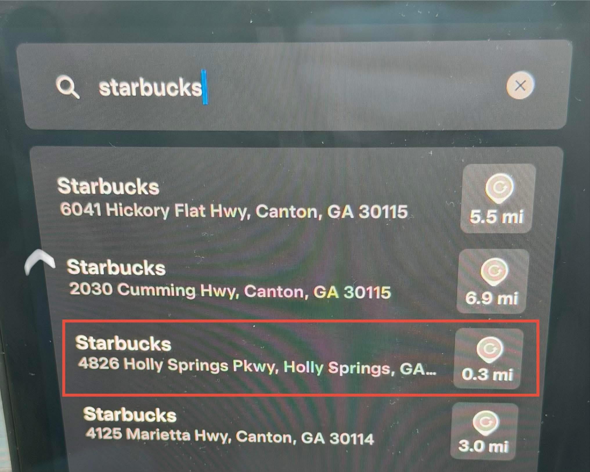 For example searching for Starbucks shows all of them in 30 miles - and now my map is zoomed out. Super annoying when you need to select the one that is not the top result.