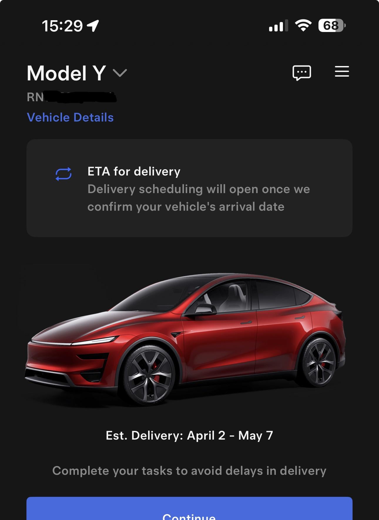 All I keep hearing in the app is, “Your car is in production.” I’m in Virginia.