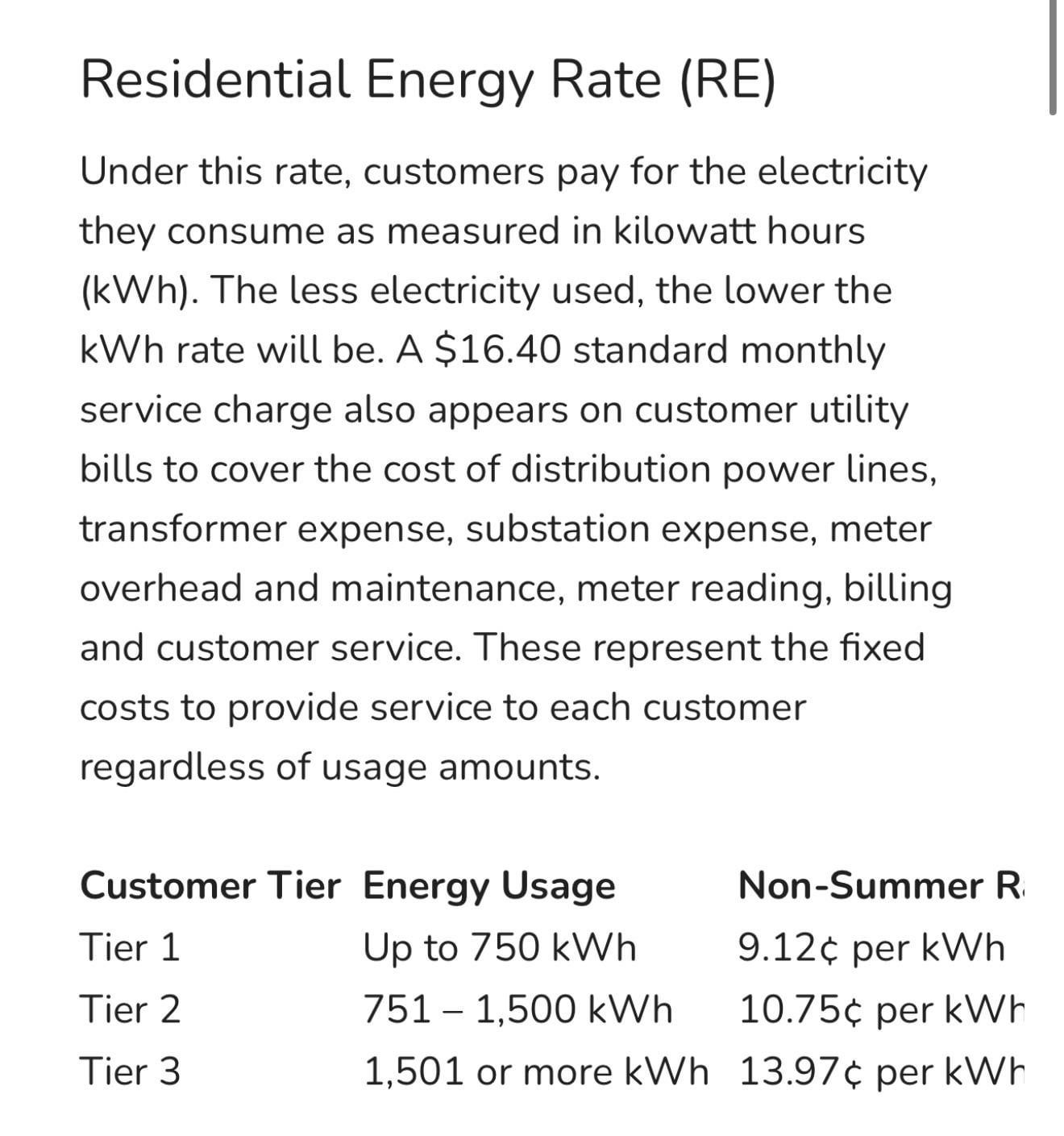 well some of us have to drag down the average, we certainly do. I am always told Georgia does :) We only used 924kWh for the period ending the 19th of September. * $0.046 per kWh first 500. (yes four cents) * 0.09 per kWh for the next 424. Now of course we still have the base service charge of $25.00 per month and around $8.00 in taxes and fees. The cost for kWh over 1000 is $0.1058. During summer, there can be an extra fee across all ranges of $0.03435/kWh, but September did not have that. Our house is fairly large and we used dual fuel heat pumps meaning our highest electric bills are in January and February but even then we never exceeded 1400 kWh. At one time I wanted to do solar with battery backup but when we sat down and ran the numbers it doesn't really help.