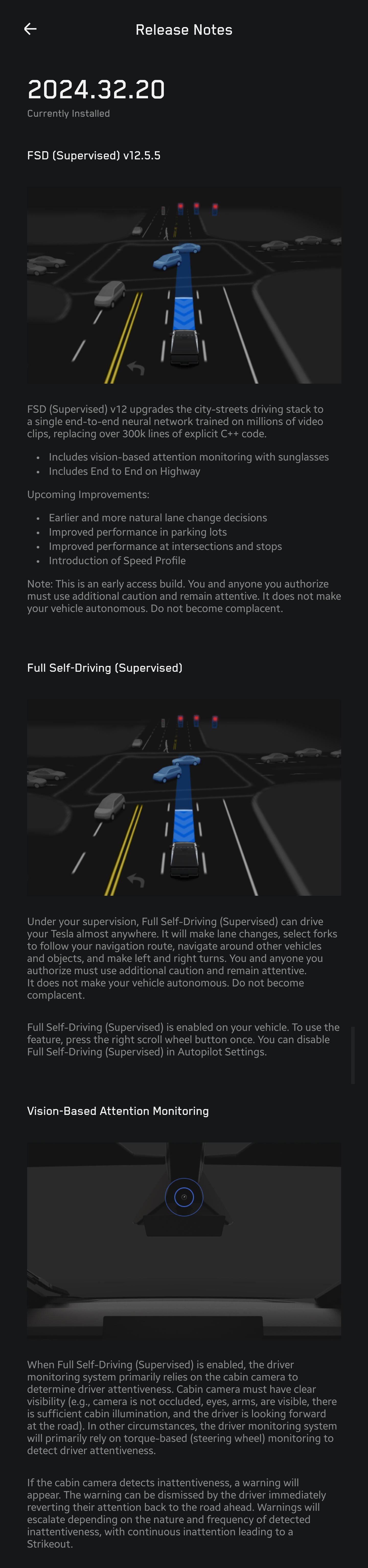 Damn, blowing my mind! I got the 32.5.4 point release Autopark update over the weekend, but alas, no FSD update yet, but this bodes well for it to not be held back for weeks.