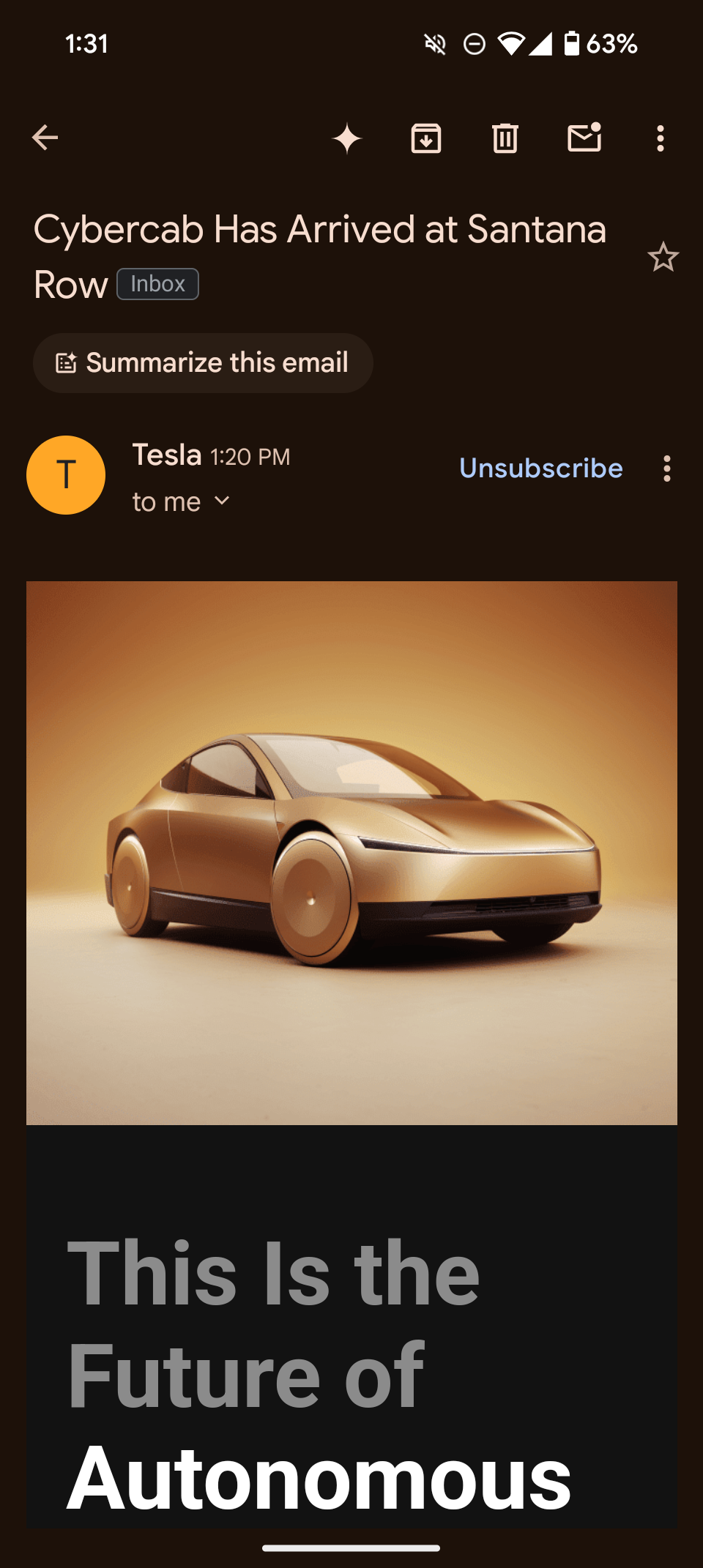 Now you can see Cybercab, our first autonomous vehicle design, on display at Tesla Santana Row.