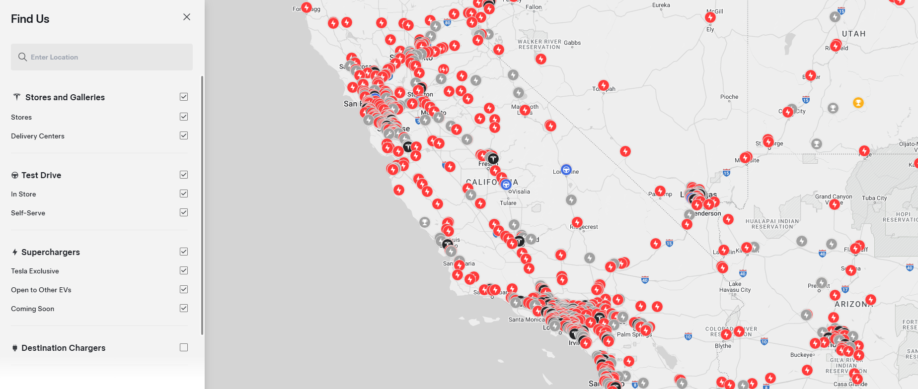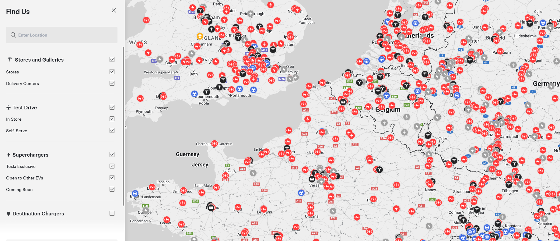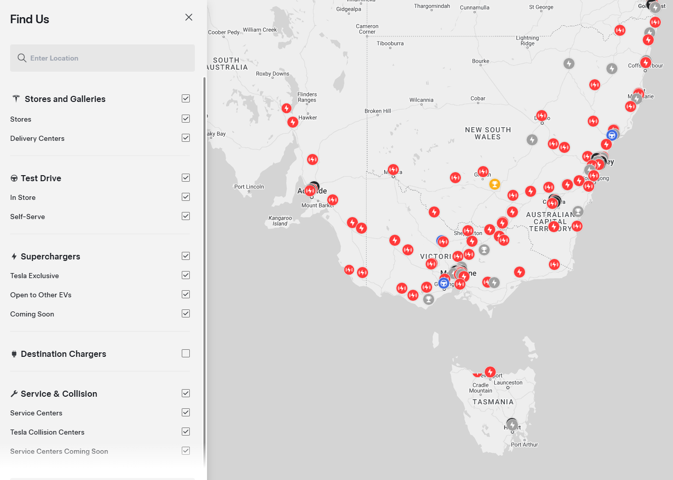 Tesla's website map has been refreshed with a new design