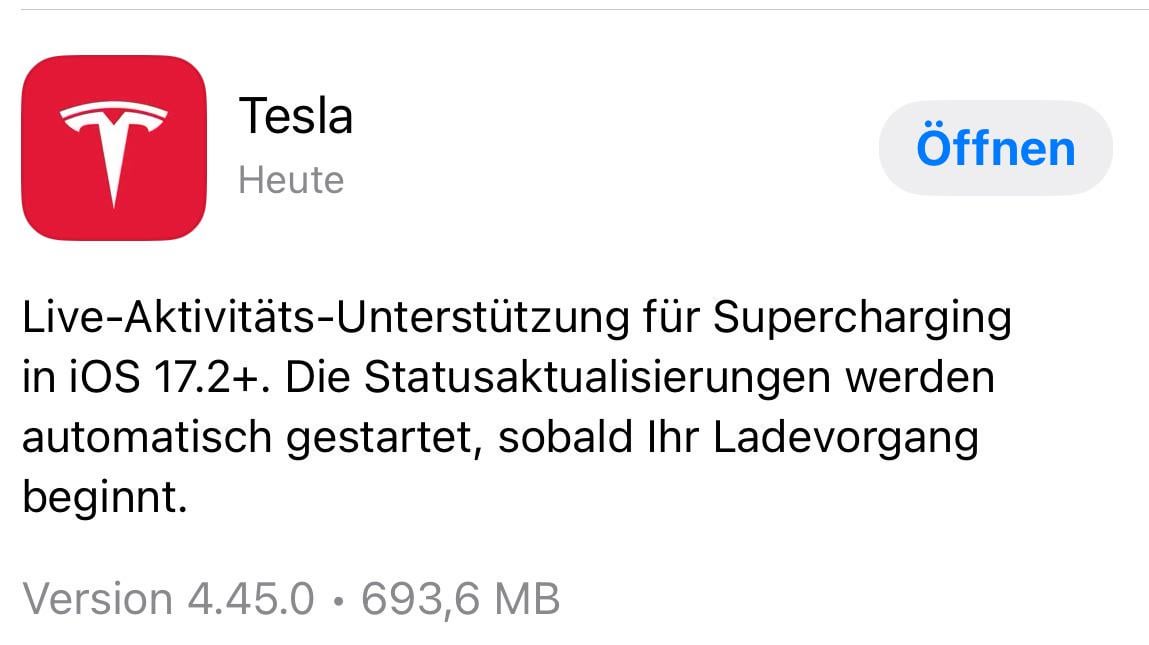 "Live Activity support for Supercharging on iOS 17.2+. Status updates will start automatically as soon as your charging session begins."