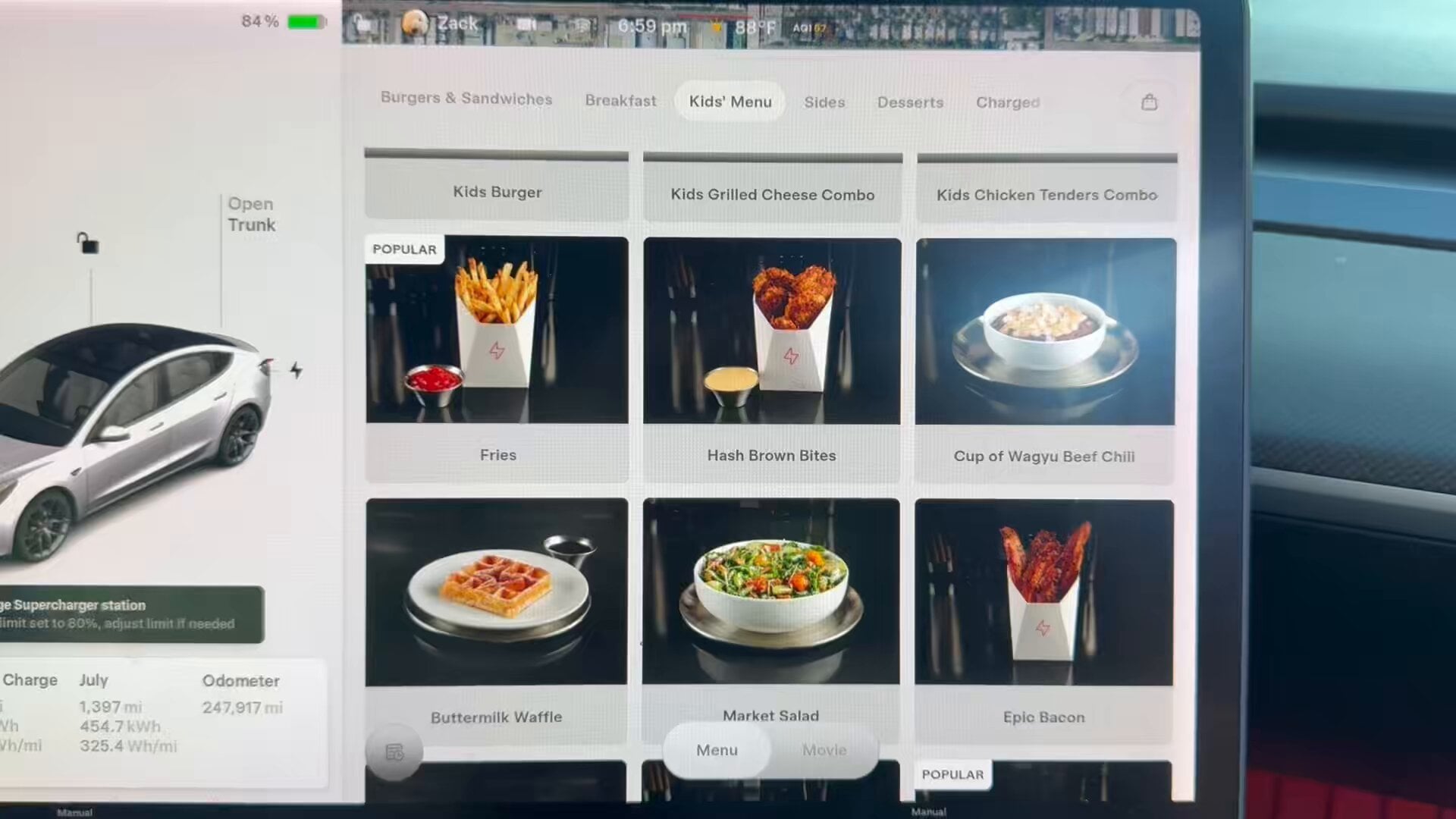 What’s it like ordering food from the Tesla Diner on screen.