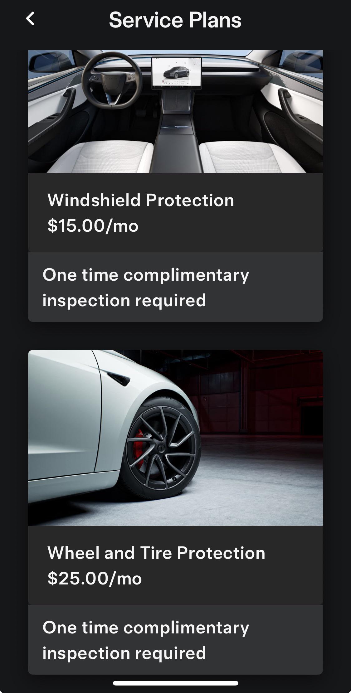 Interesting. In the UK windshields are normally always covered by our insurance companies (i know this as I've been unfortunate enough to require 4 windshield replacements on two Tesla Model 3s) - this service for Tesla in the UK would be moot, which probably explains why i don't even see it as an option in the app here. The wheel/tire protection is interesting tho - if i was ever unlikely enough to need 4 replacement tires in a year it would cost be the equivalent of £83 GBP per month, (£250 GBP per tire x 4 = £1,000 GBP / 12) so $25/mo would actually be good value assuming there are no crazy limits on how many times you could use it in a year.