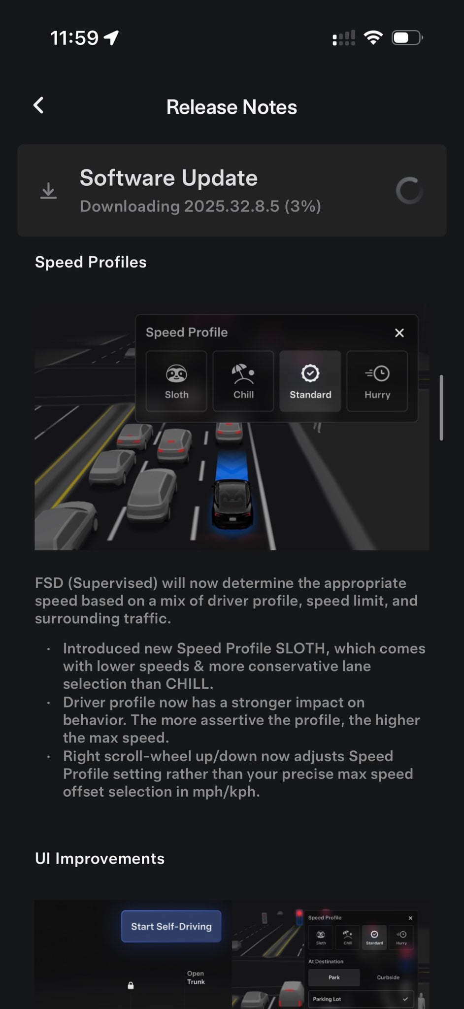 New owner with fsd trial. I don’t know if this is possible, but it would be great if hitting left on the scroll wheel moved from … standard > chill > sloth > auto steer > cruise control. That way I can mitigate the lane change issue