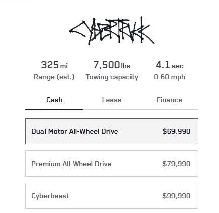 Dual-Motor AWD Cybertruck now costs $69,990