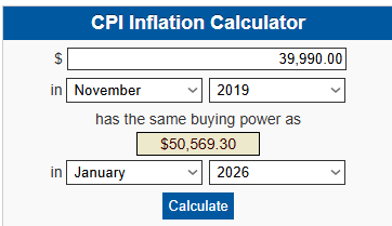 That was 2019. $49,900 in 2026 dollars is $63,500.